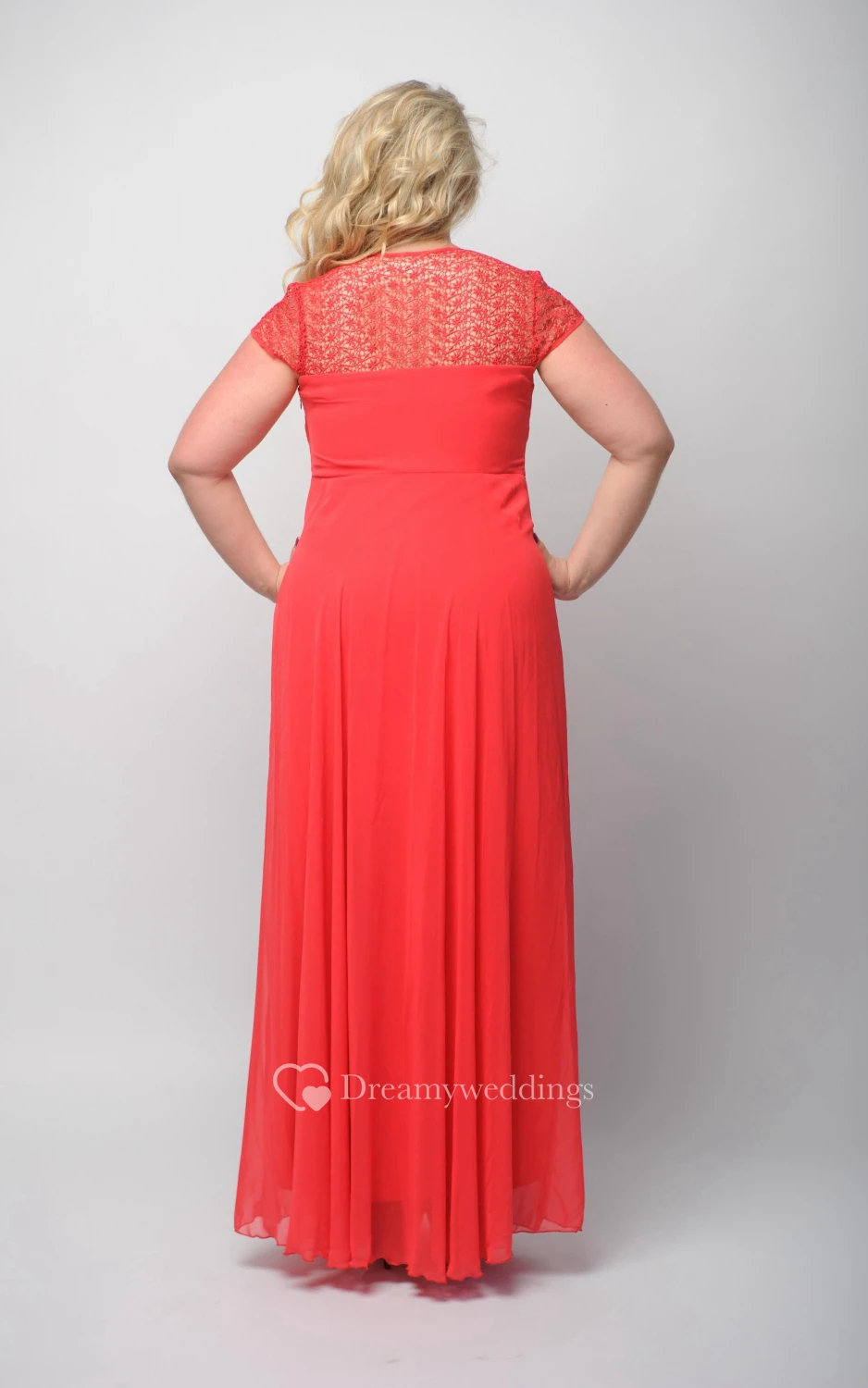 Empire Floor-Length V-Neck Short Sleeve Empire Chiffon Crystal Detailing Dress