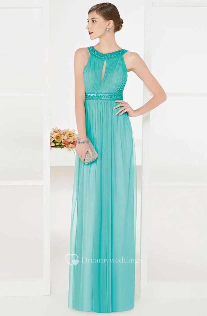 Empire Front Keyhole Tulle Long Prom Dress With Sequined Neck And Waist