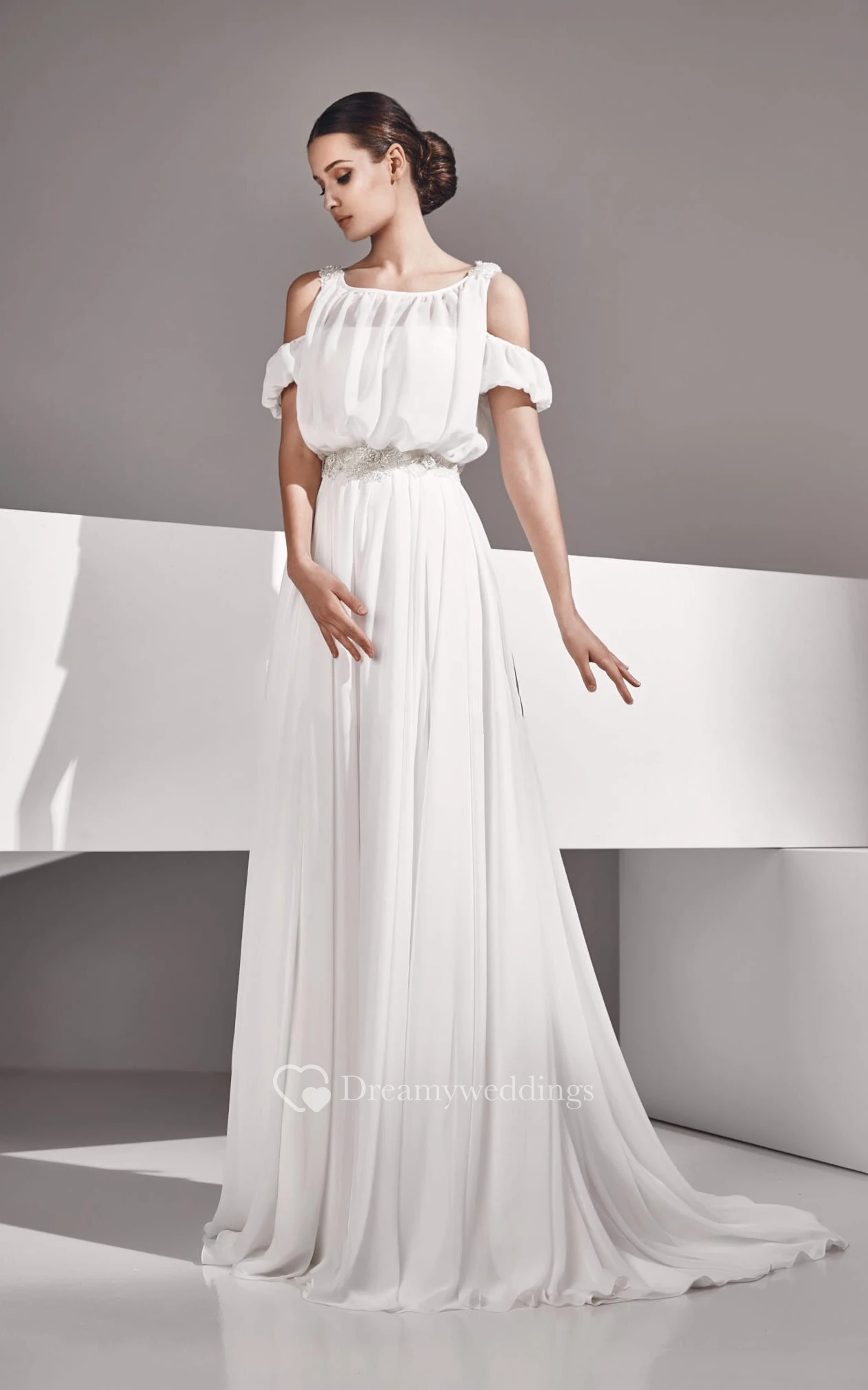 Empire Long Chiffon Dress With Crystal Detailing