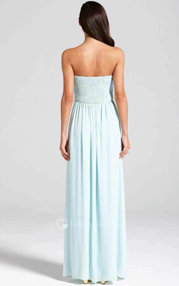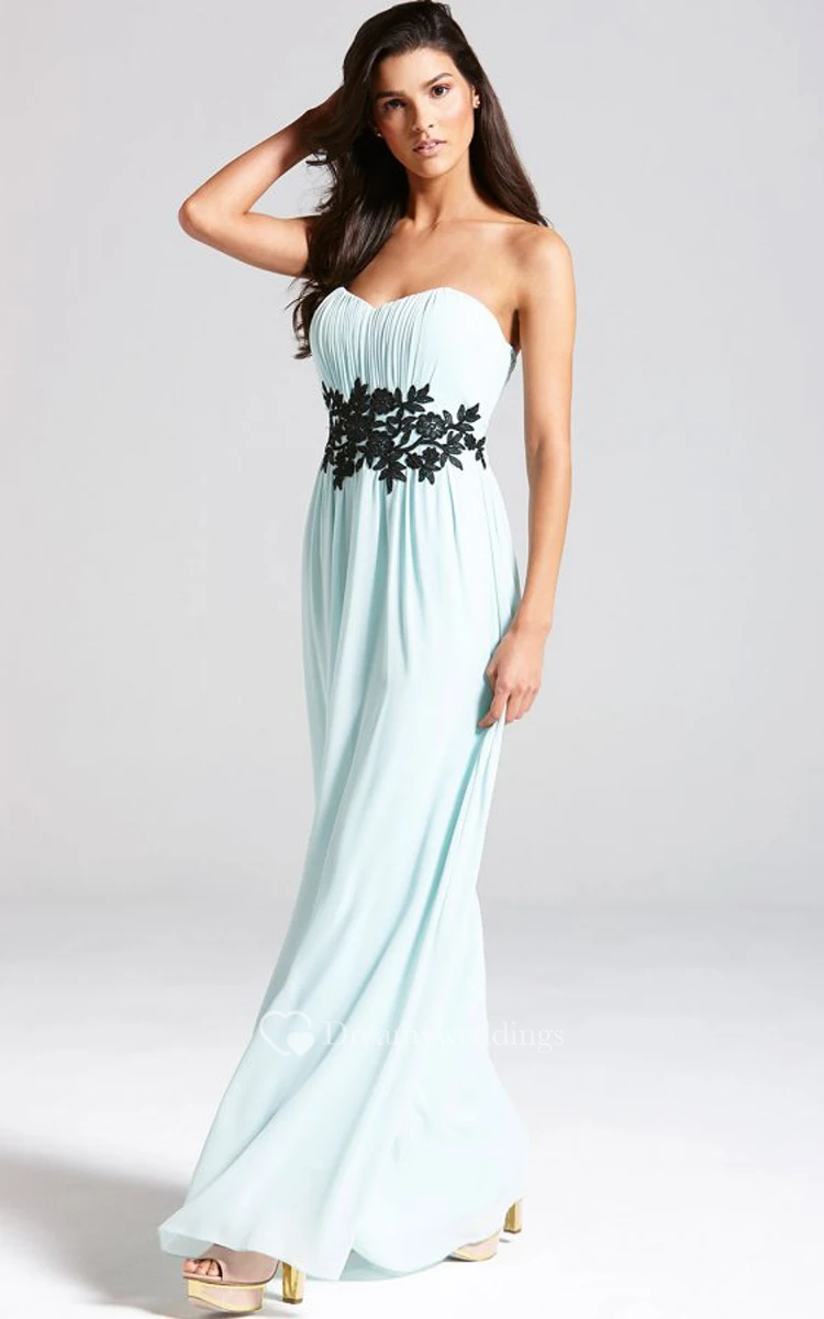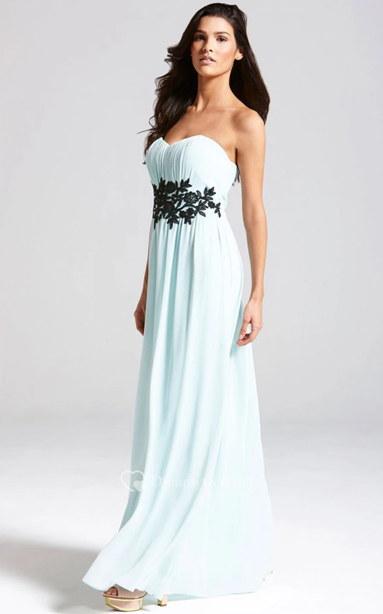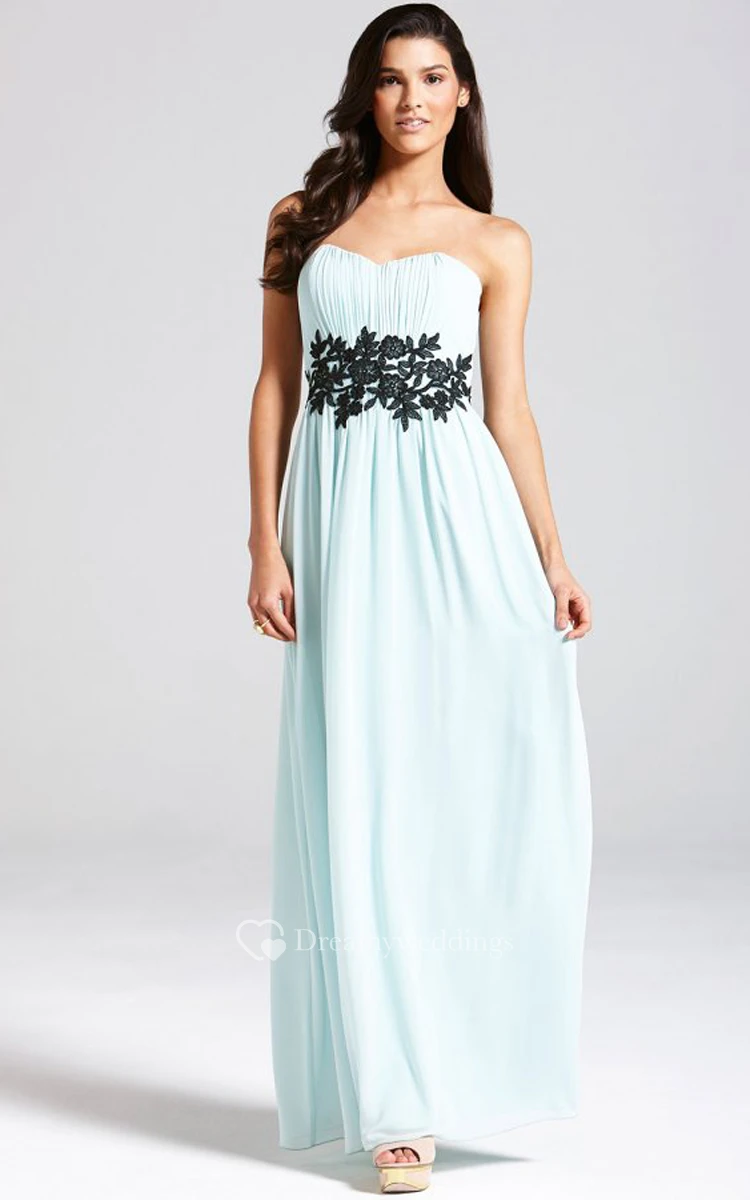 Empire Long Strapless Chiffon Dress With Lace Applique