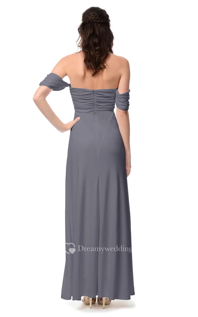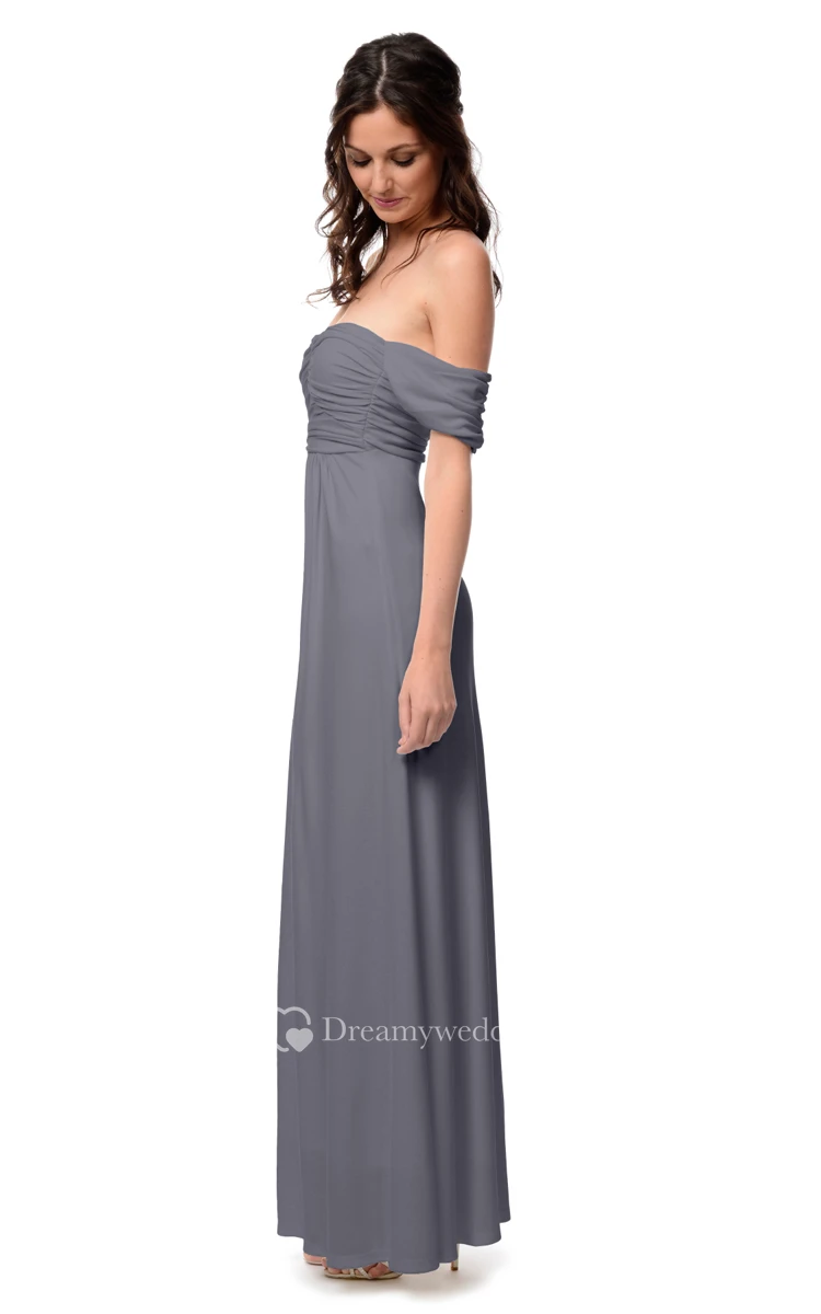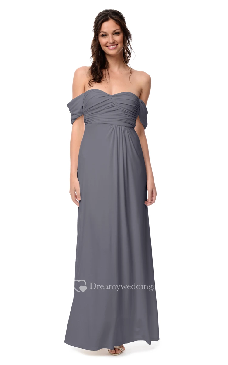 Empire Off-The-Shoulder Chiffon Dress With Ruching