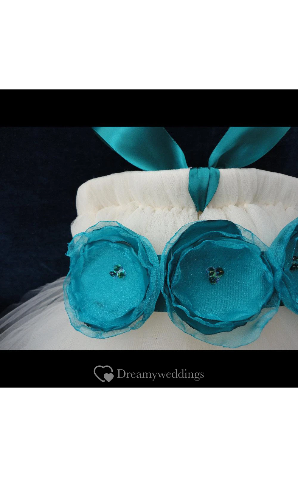 Empire Pleated Bodice Tulle Ball Gown With Waist Flower