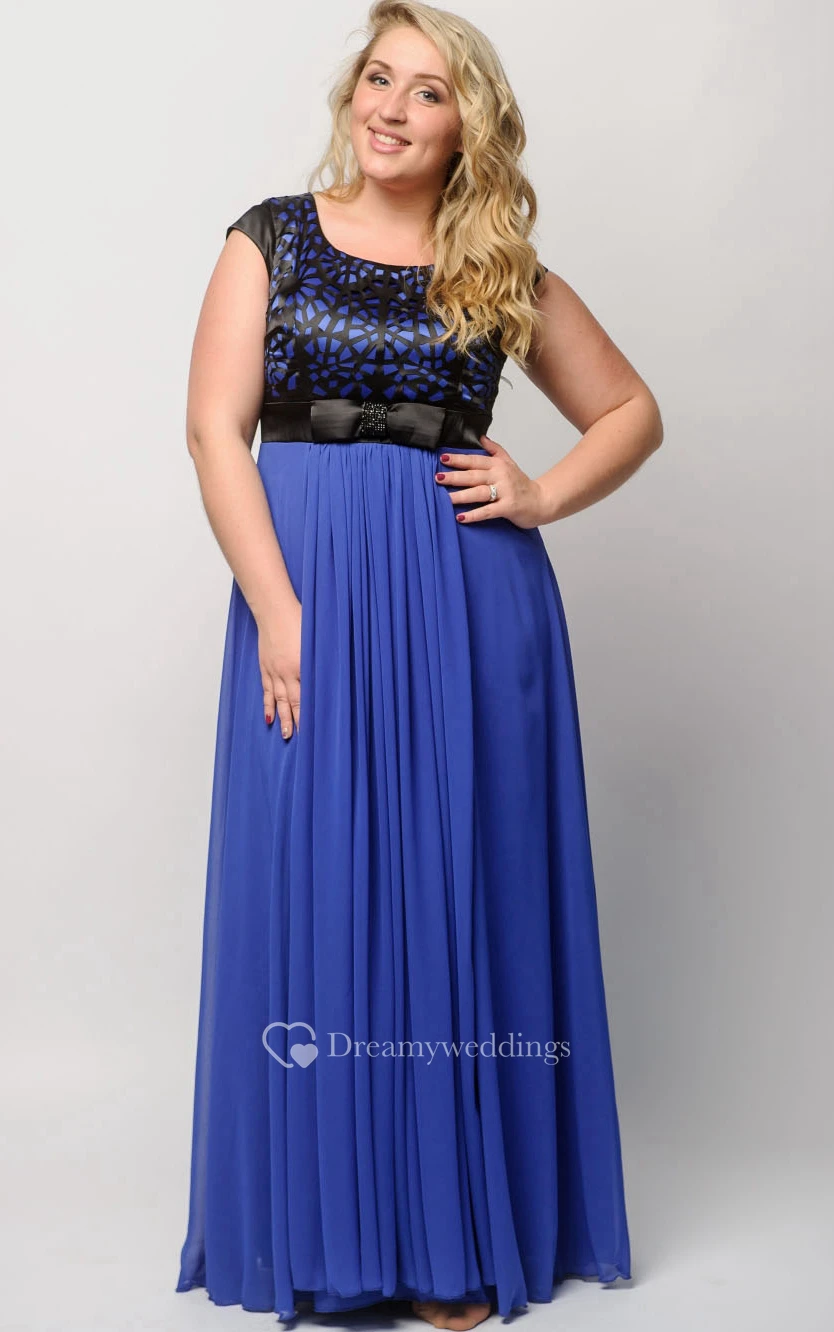 Empire Scoop Short Sleeve Empire Chiffon Bow(S) Zipper Dress