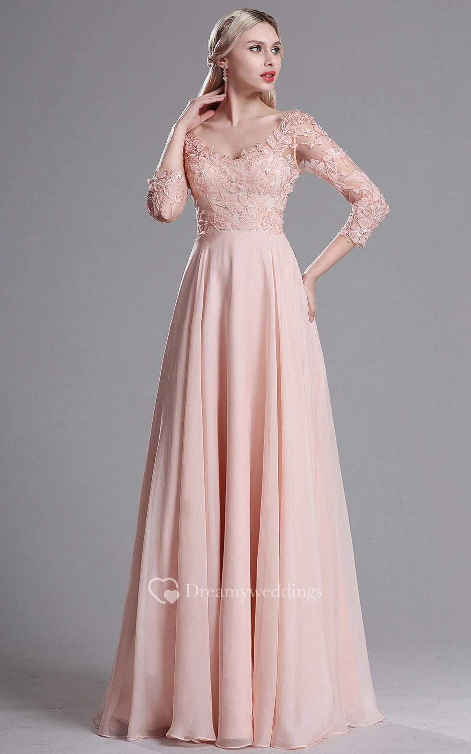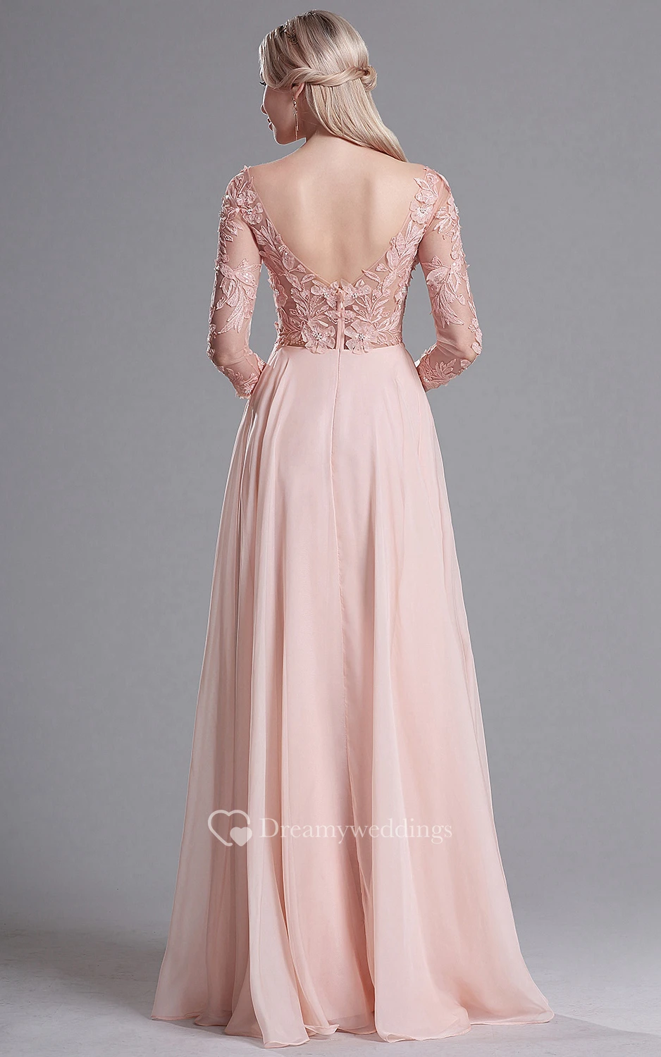 Empire V-Neck 3 Empire Chiffon Appliques Low-V Back Dress