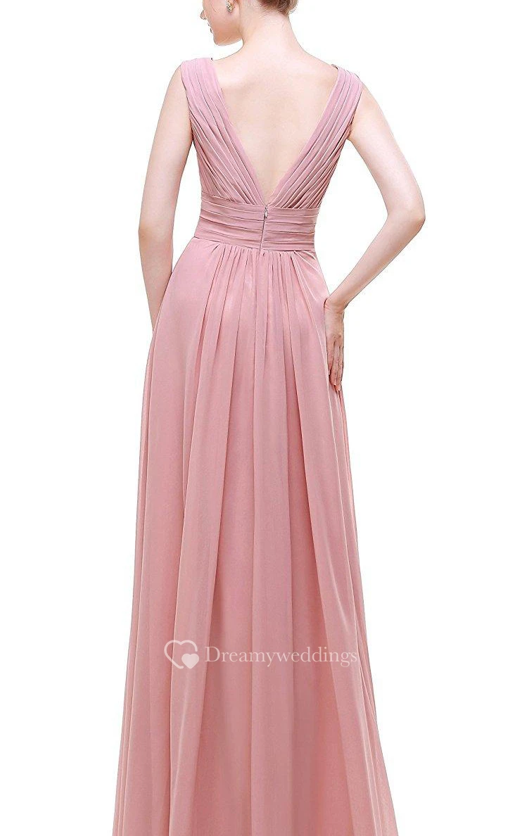 Empire V Neck V Back Beaded A-line Chiffon Dress Pink