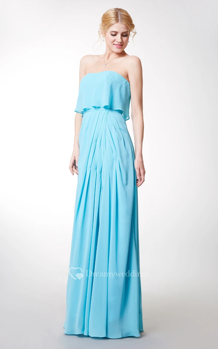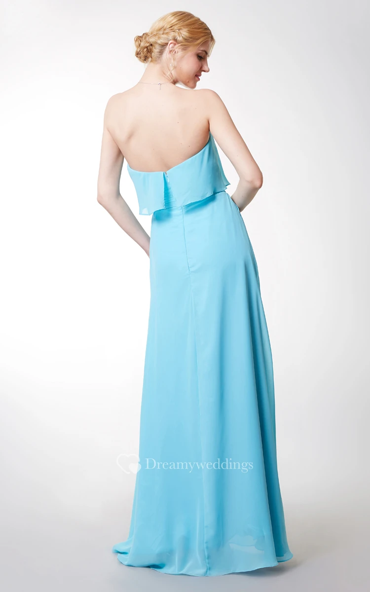 Enchanting Strapless Long Chiffon Dress With Front Side Slit