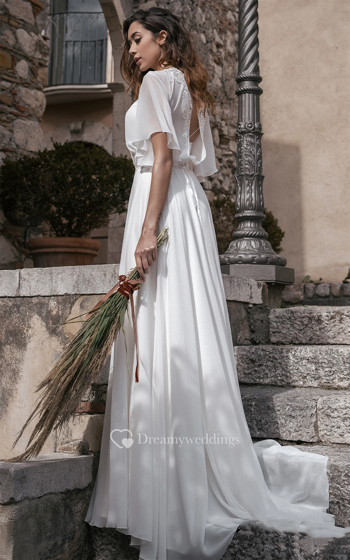 Ethereal A Line Chiffon Jewel Sweep Train Wedding Dress with Sash