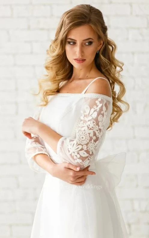 Ethereal A Line Tulle Floor-length 3/4 Length Sleeve Zipper Wedding Dress with Appliques