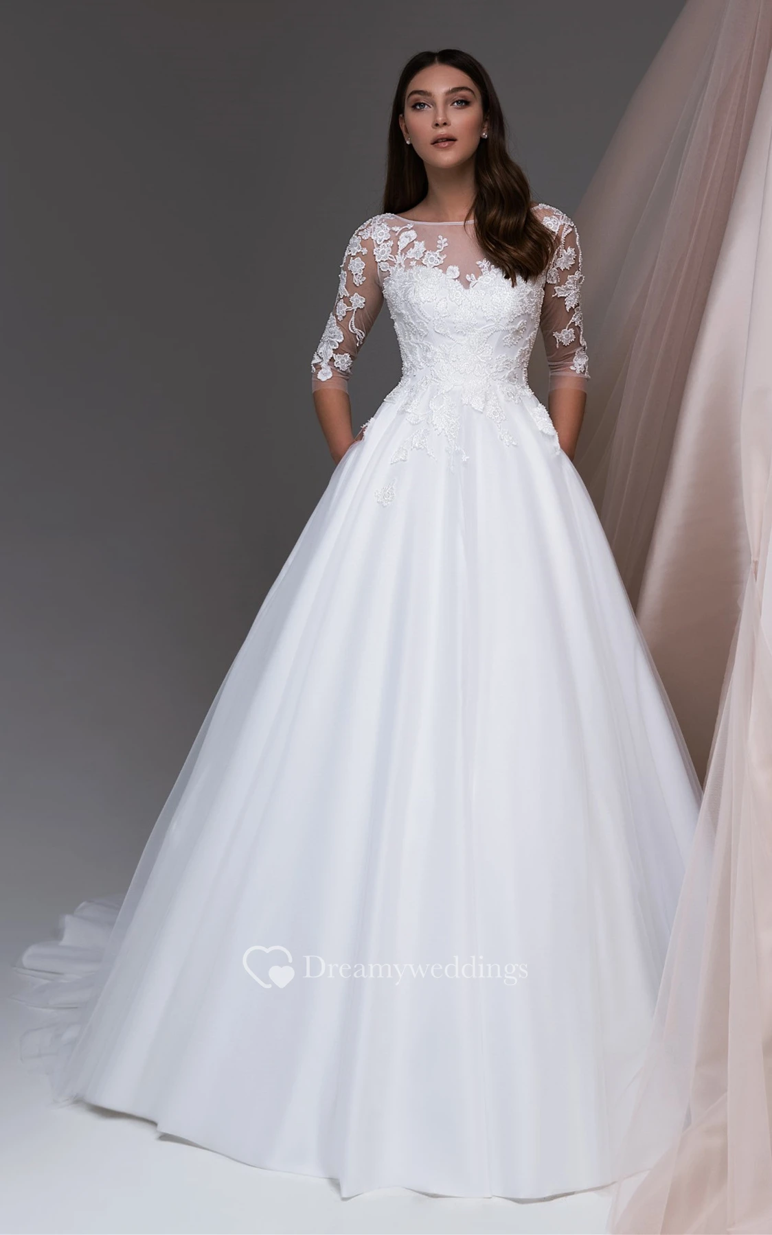 Ethereal Ball Gown Princess Lace Bridal Gown with Pockets