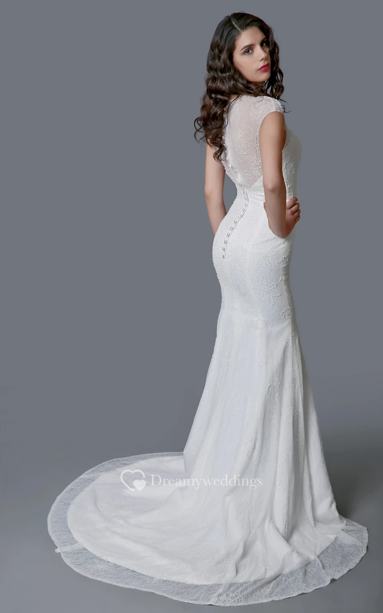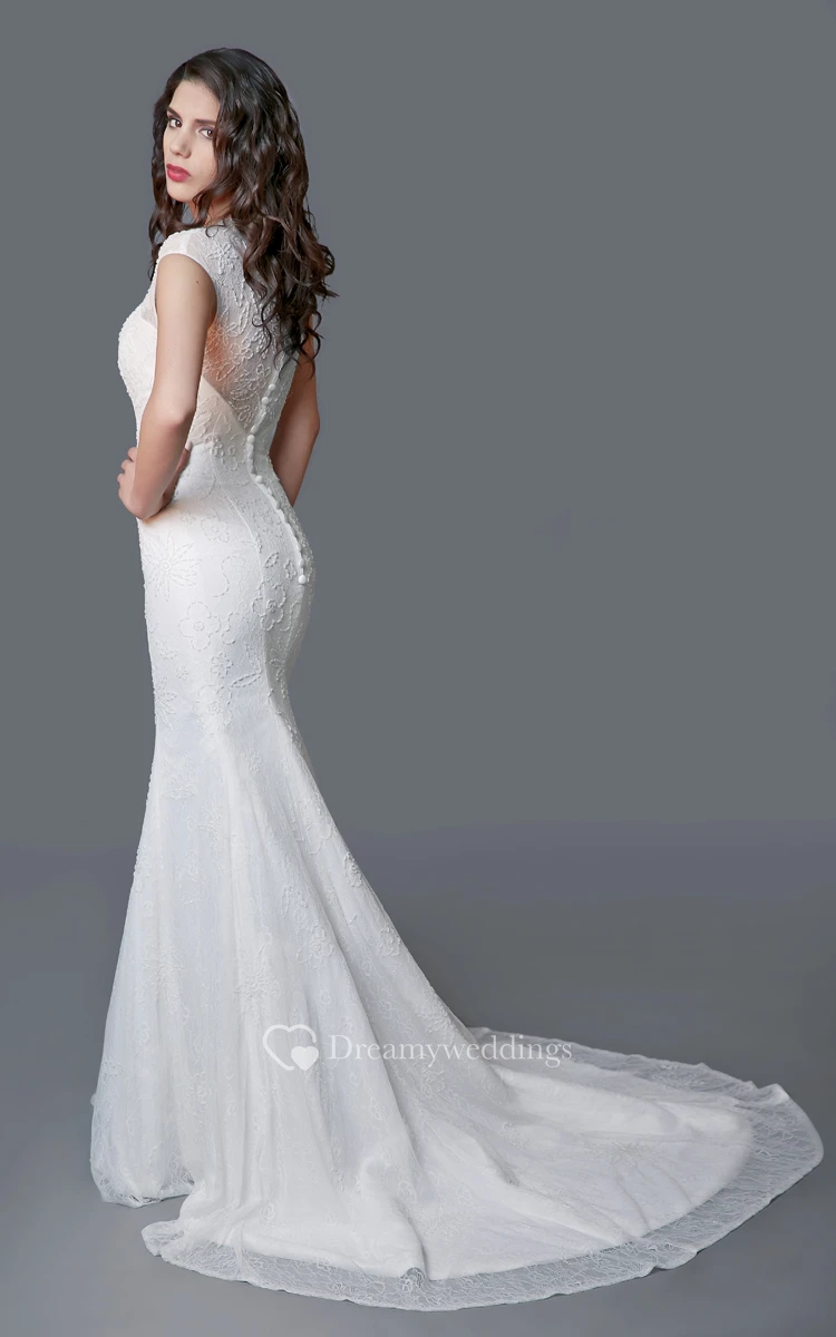 Ethereal Cap Sleeve Long Lace Sheath Dress