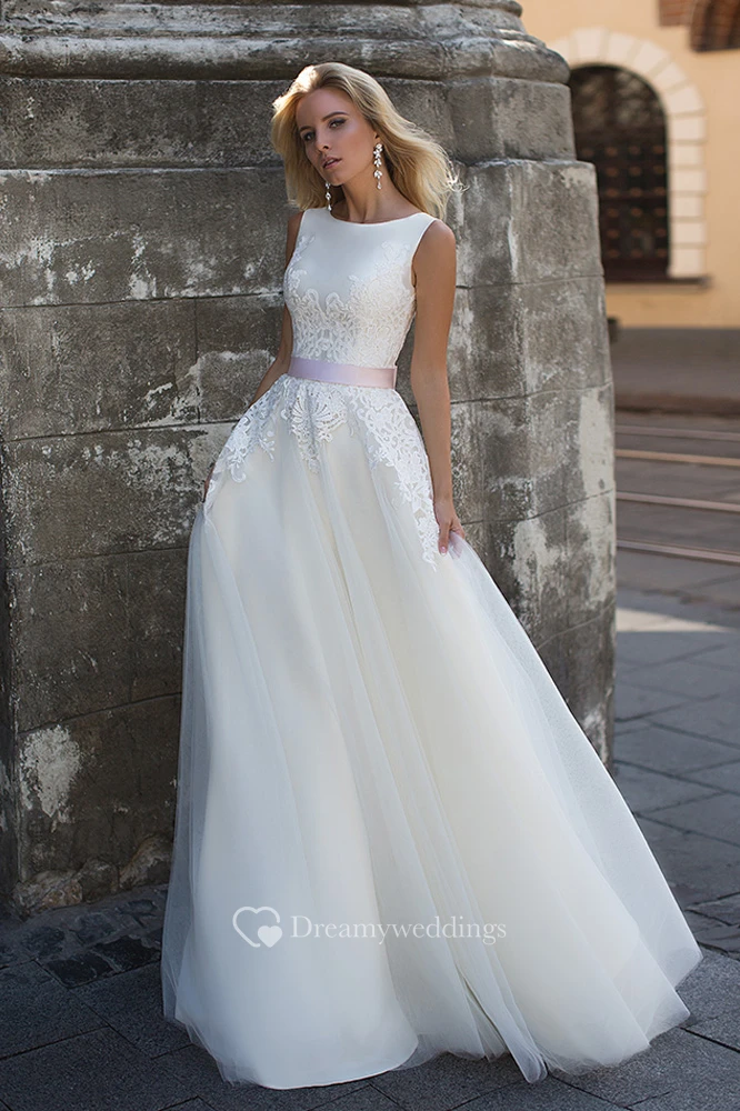 Ethereal Chiffon and Tulle Scoop-neck Sleeveless Wedding Dress with Bow