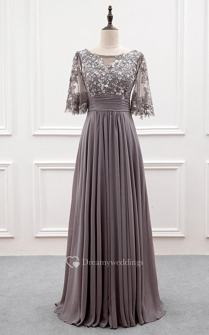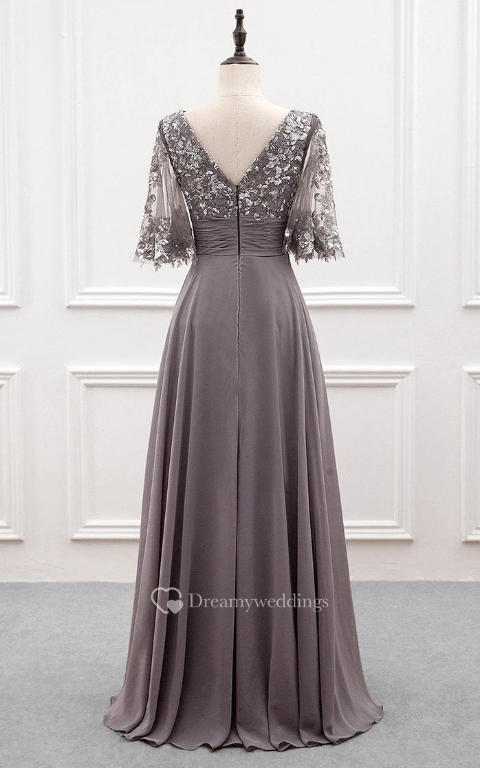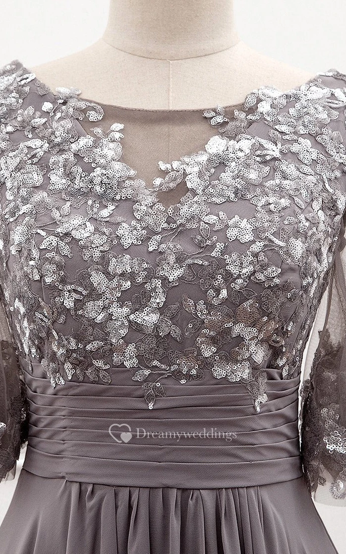 Ethereal Floor-length Half Sleeve Chiffon A Line Zipper Prom Dress with Sequins