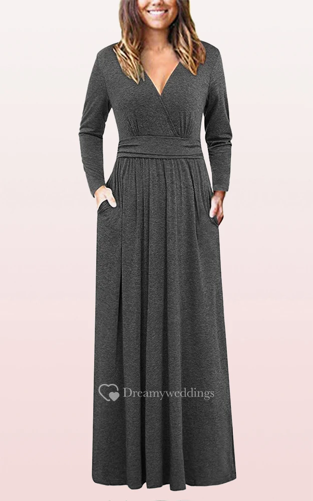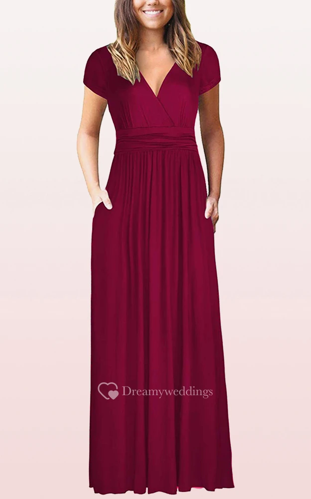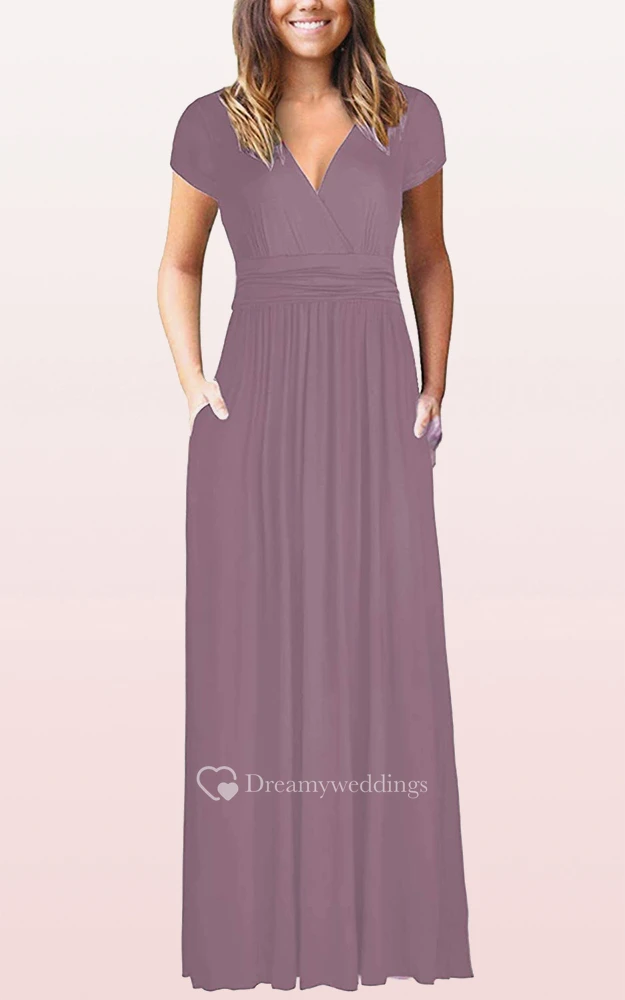 Ethereal Jersey V-neck A Line Guest Formal Dress With Pockets