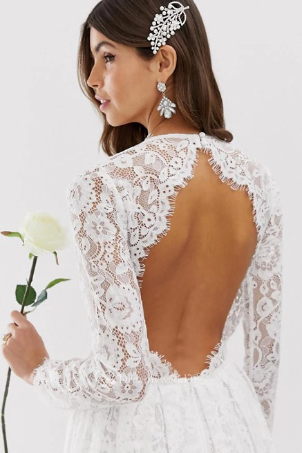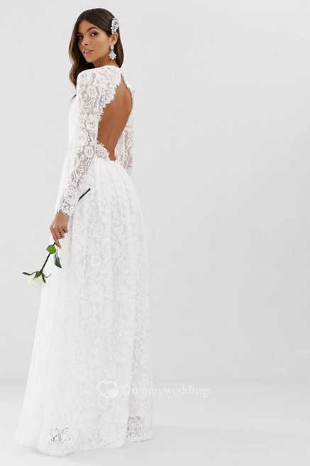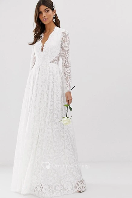 Ethereal Lace and Chiffon Long Sleeve Keyhole Wedding Dress