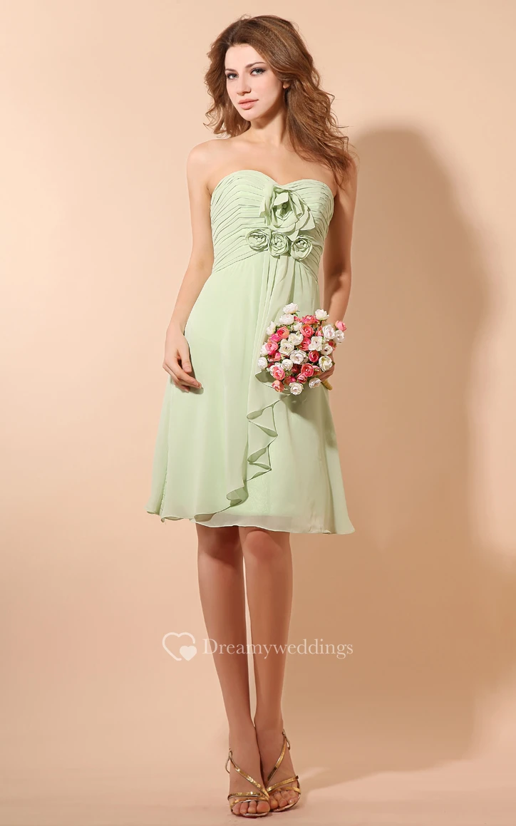 Ethereal Short Chiffon Dress With Ruching and Flower
