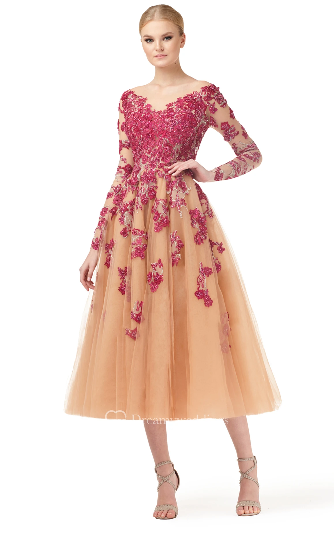 Exquisite A Line V-neck Tea-length Cocktail Dress