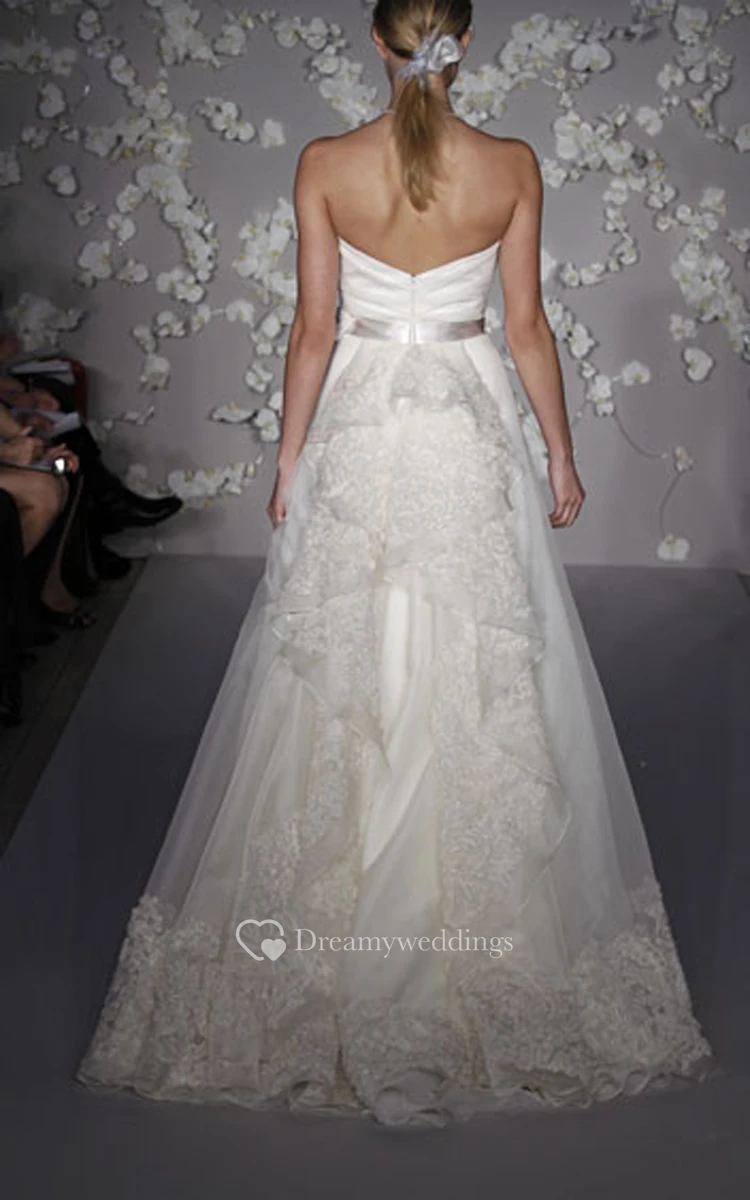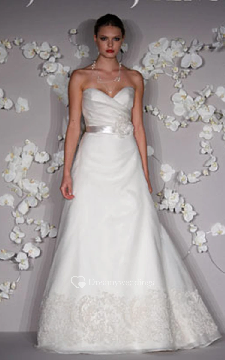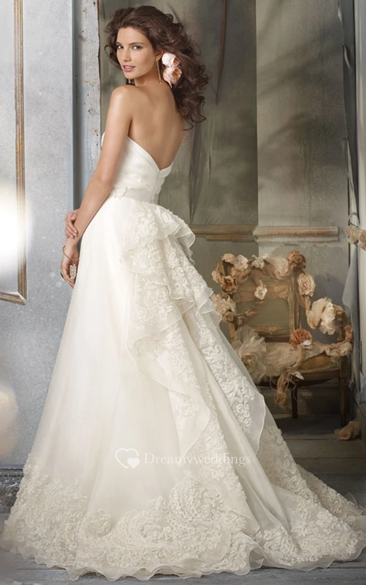 Exquisite Draped Bodice a Line Organza Gown With Floral Embroidered Hem