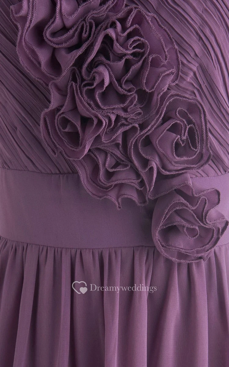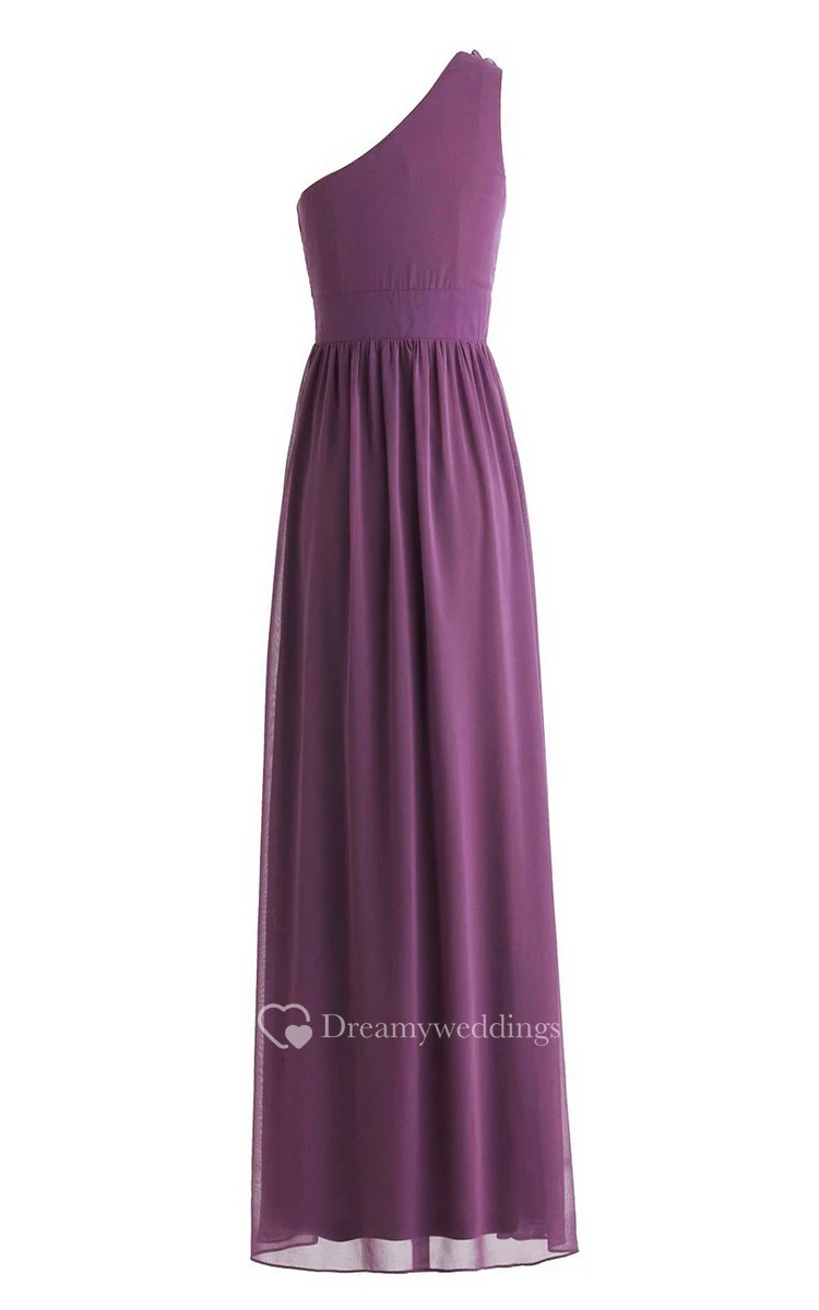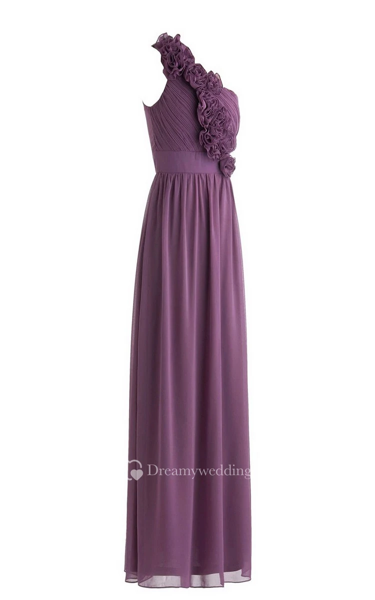 Exquisite Floral One-shoulder Pleated Chiffon A-line Gown
