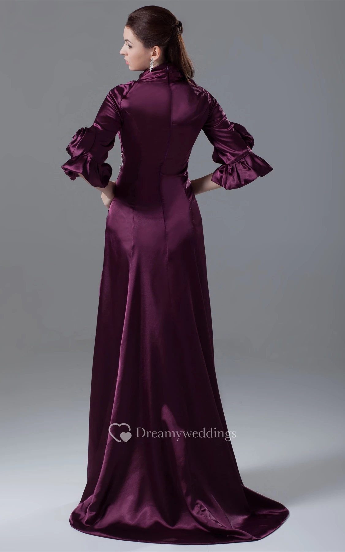 Exquisite Side-Ruched Long-Sleeve Beading and Gown With Flower