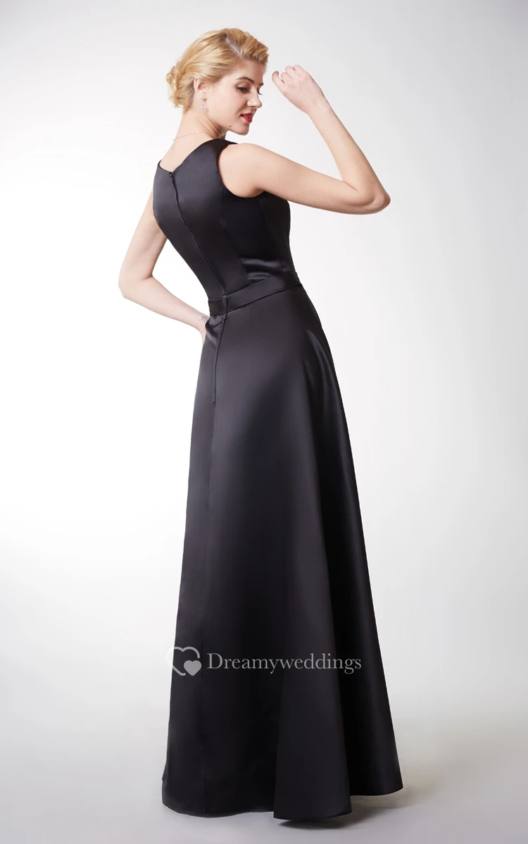 Exquisite Strapless Jewel Neck Long Satin Dress