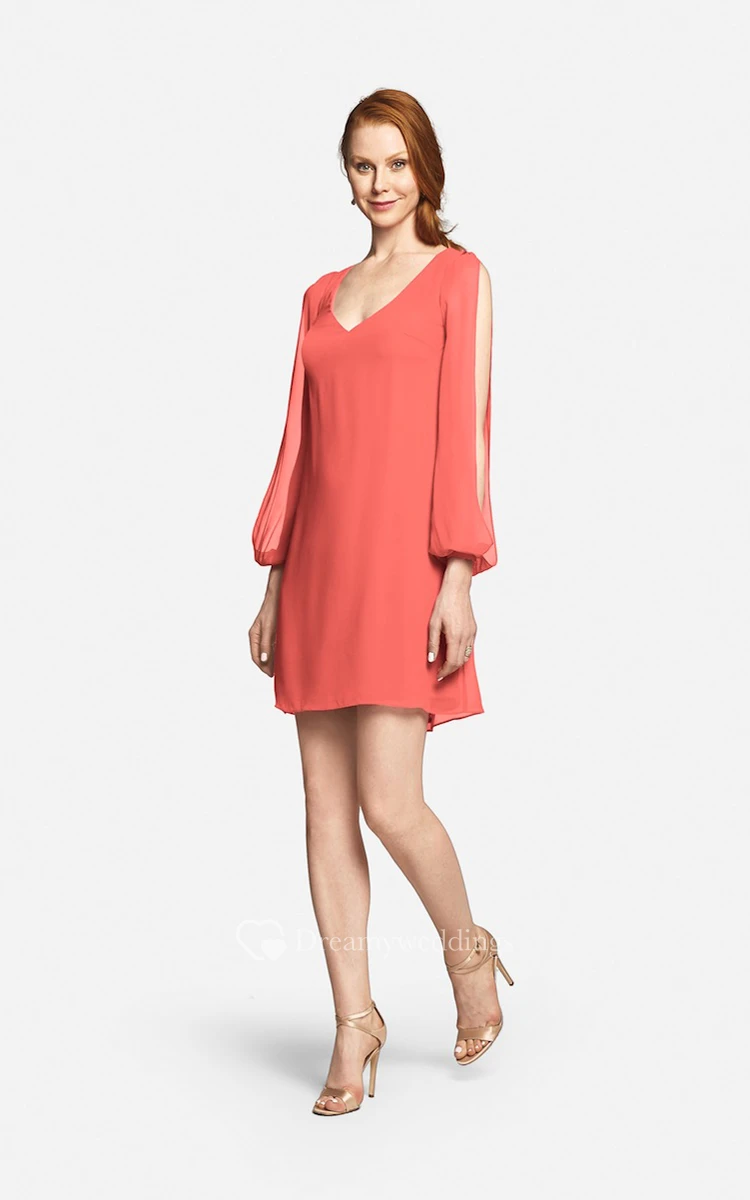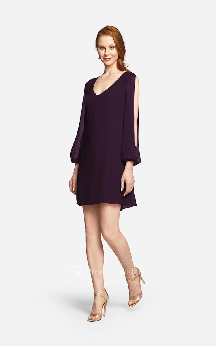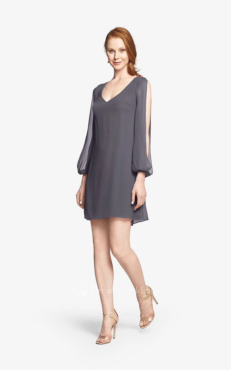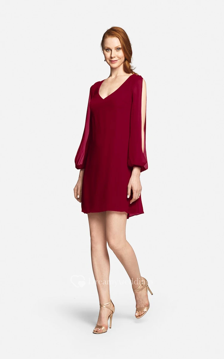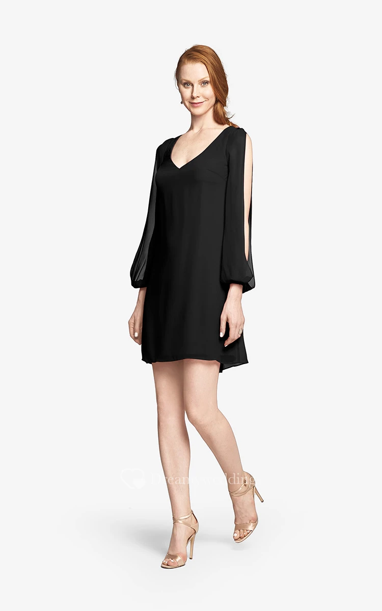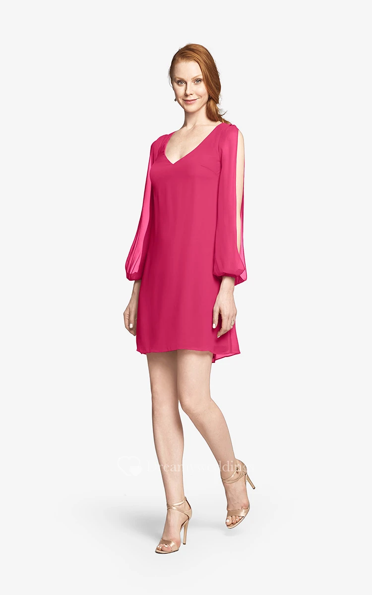 Fabulous Mini Sweetheart V-neck Chiffon Dress With Long Sleeves