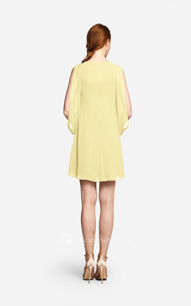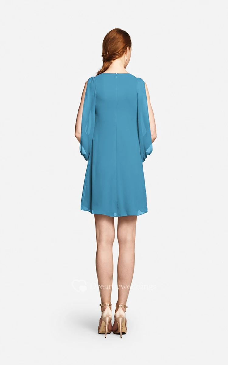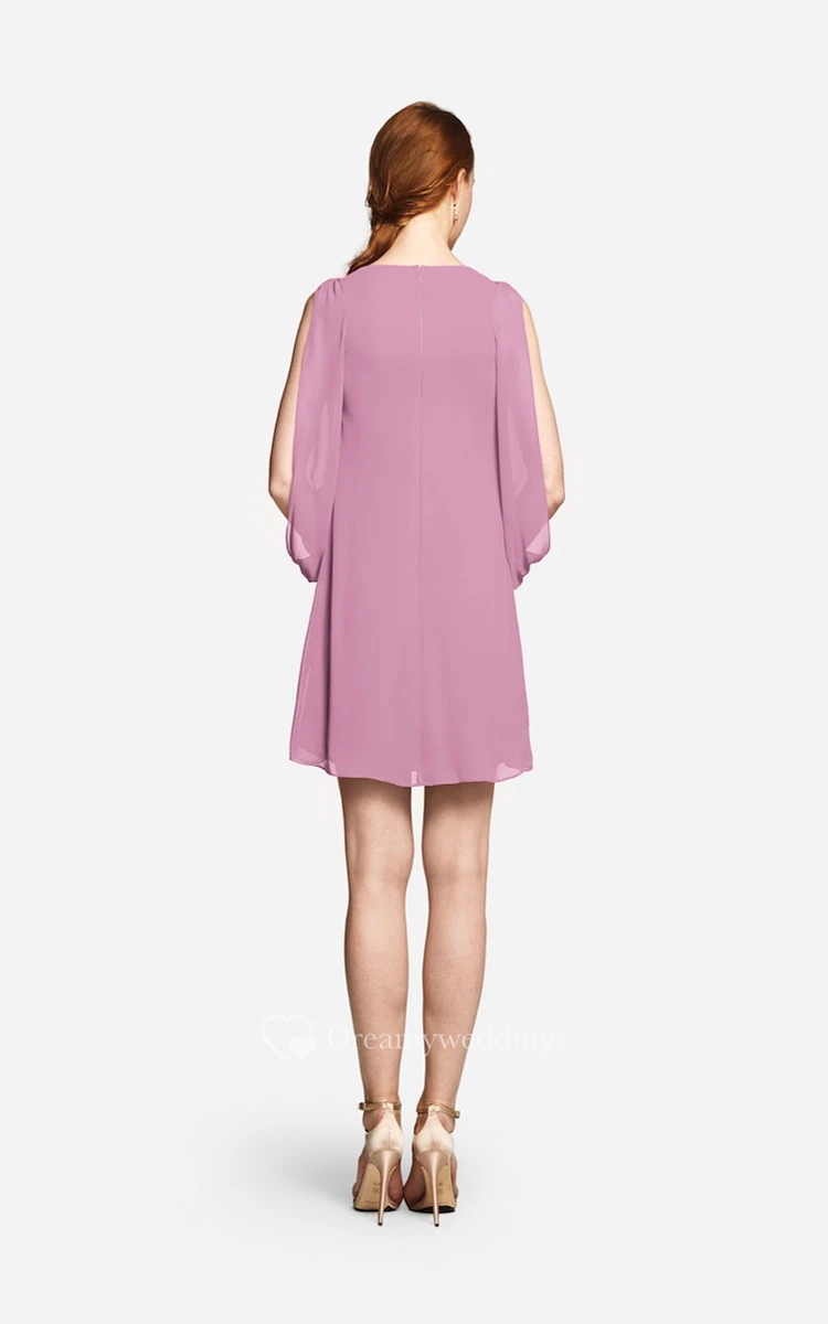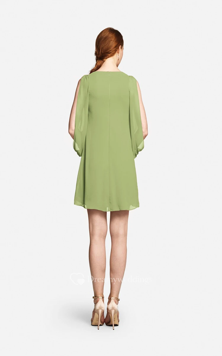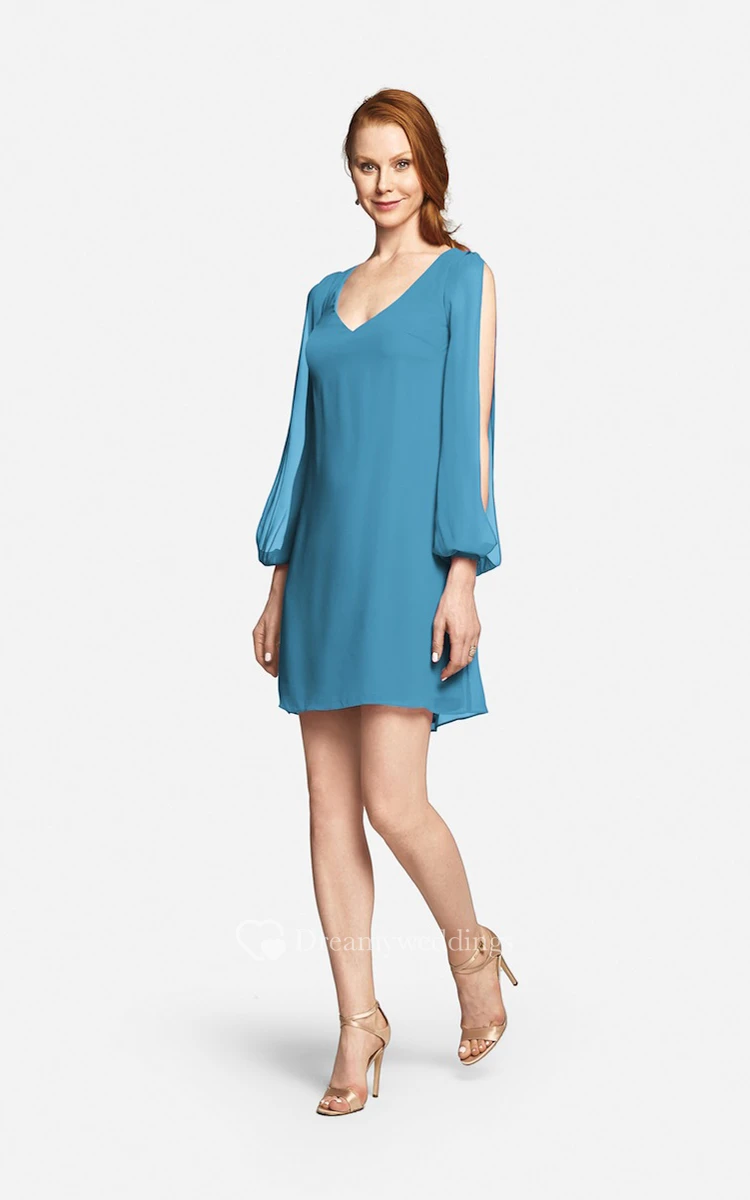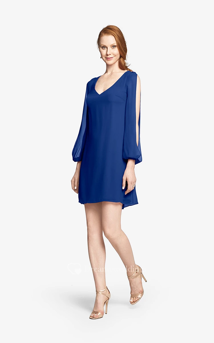 Fabulous Mini Sweetheart V-neck Chiffon Dress With Long Sleeves
