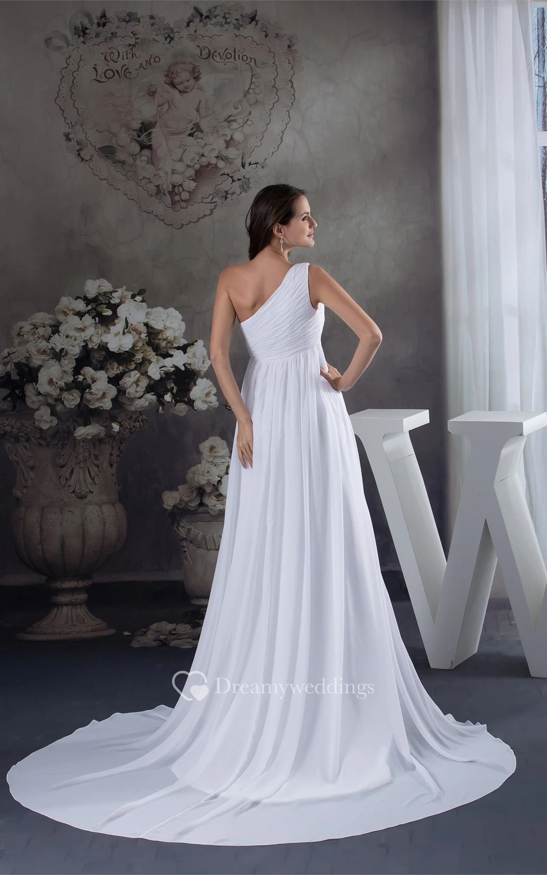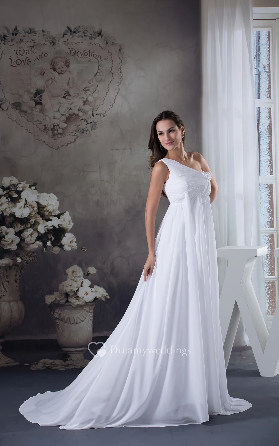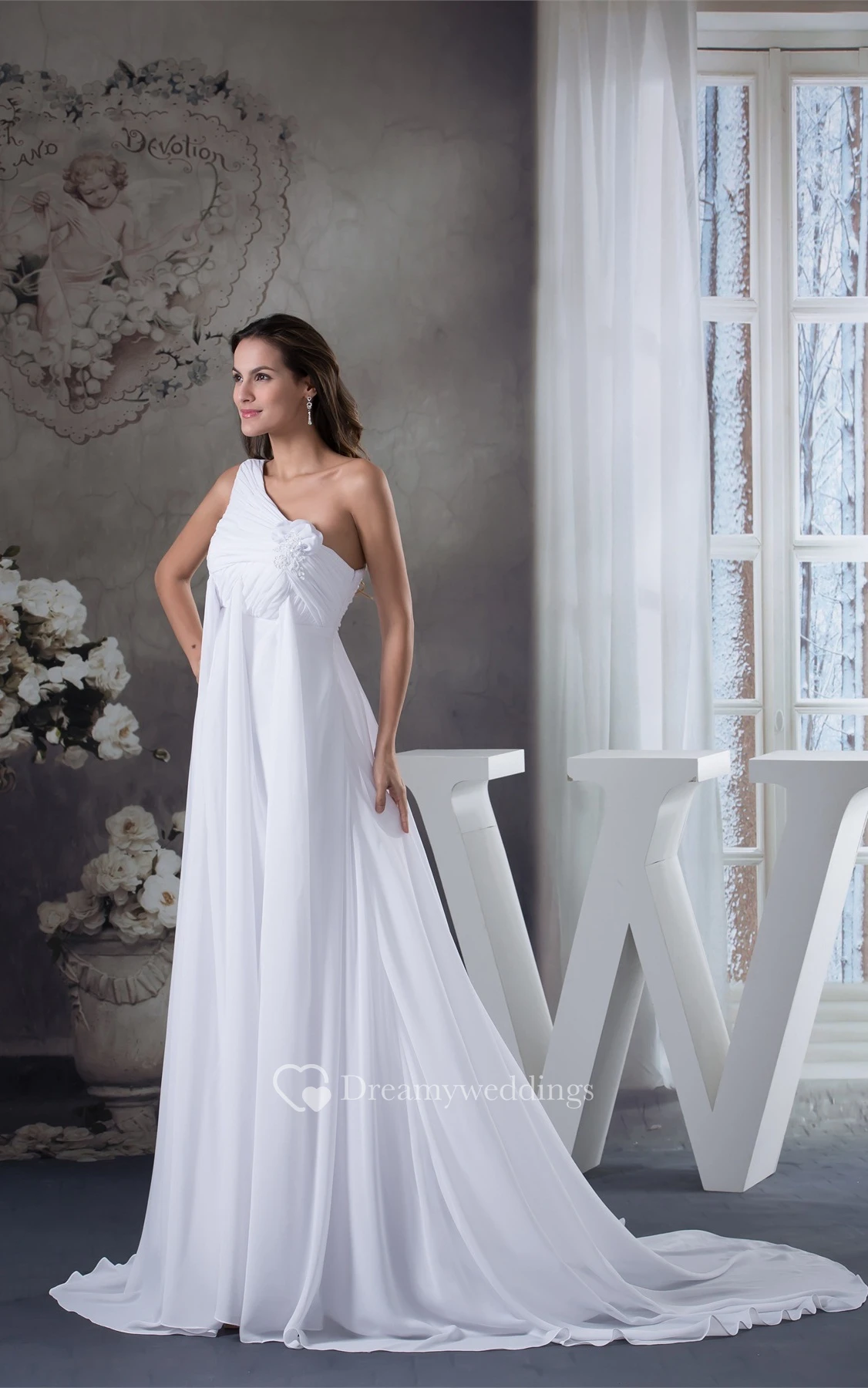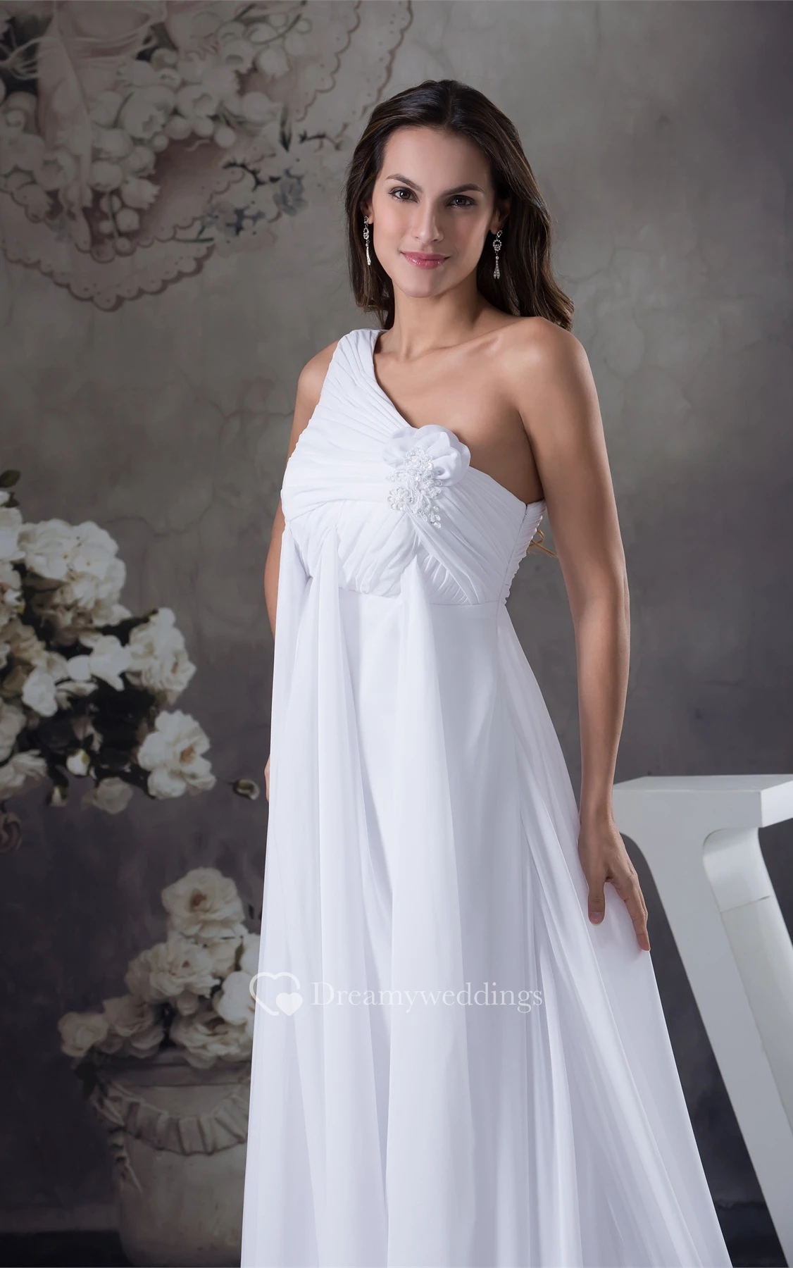 Fairy Empire Floor-Length One-Shoulder Flower and Dress With Pleats