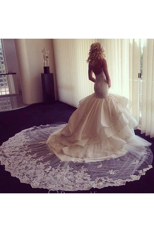 Fairy Open Back Lace Mermaid Wedding Dress With Ruffles