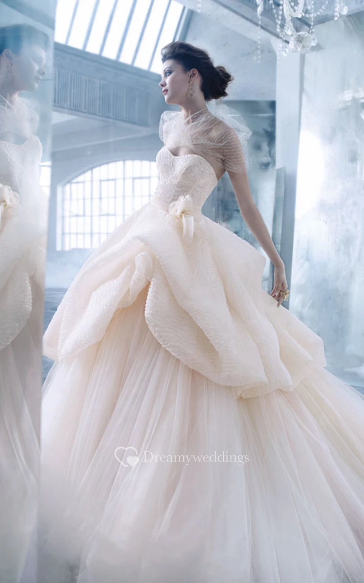 Fantastic Corseted Bodice Tulle Ball Gown With Bubble Peplum