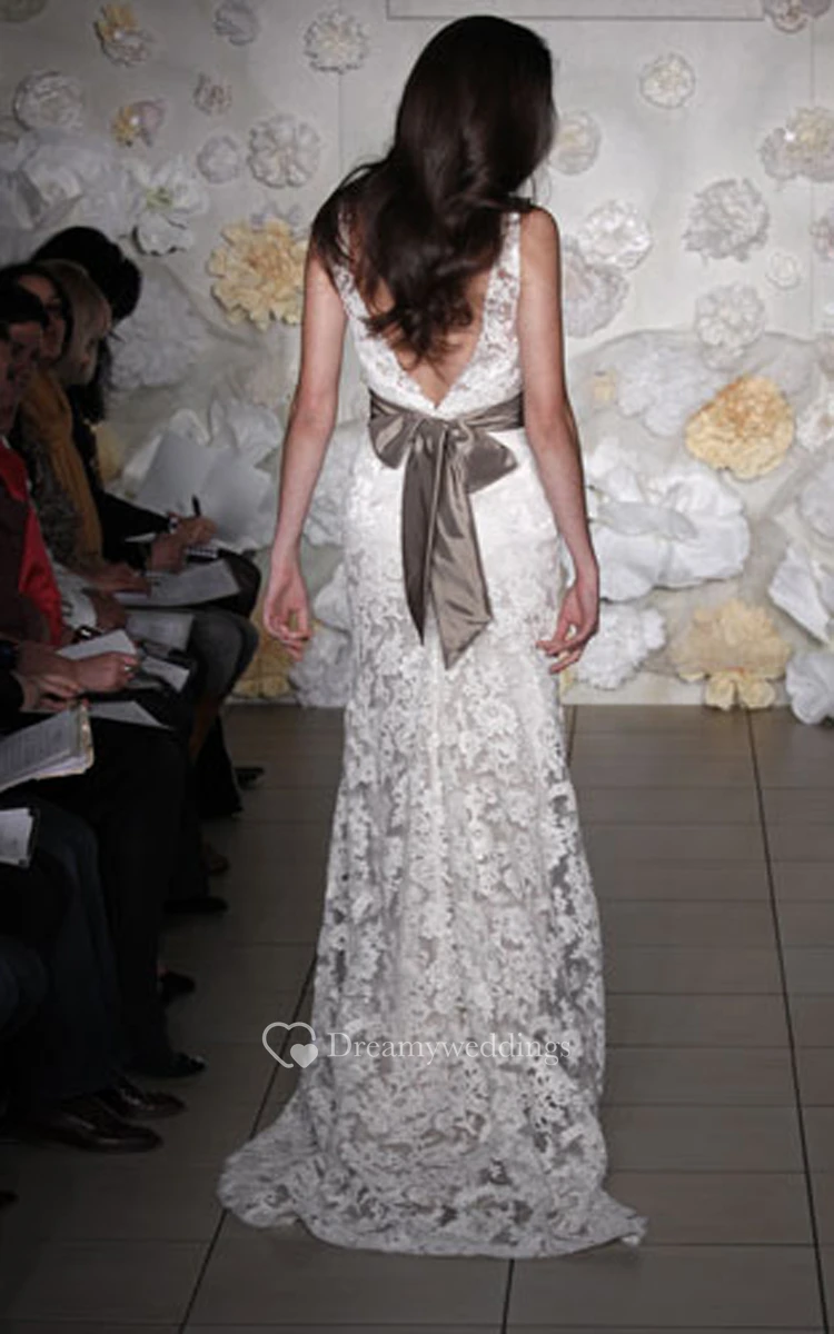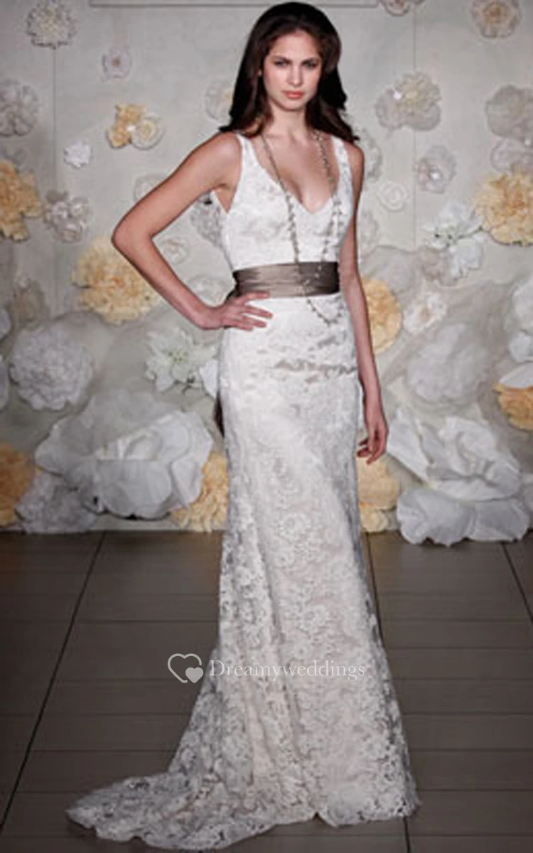 Fantastic Sleeveless Lace Over Charmeuse Dress With V Back