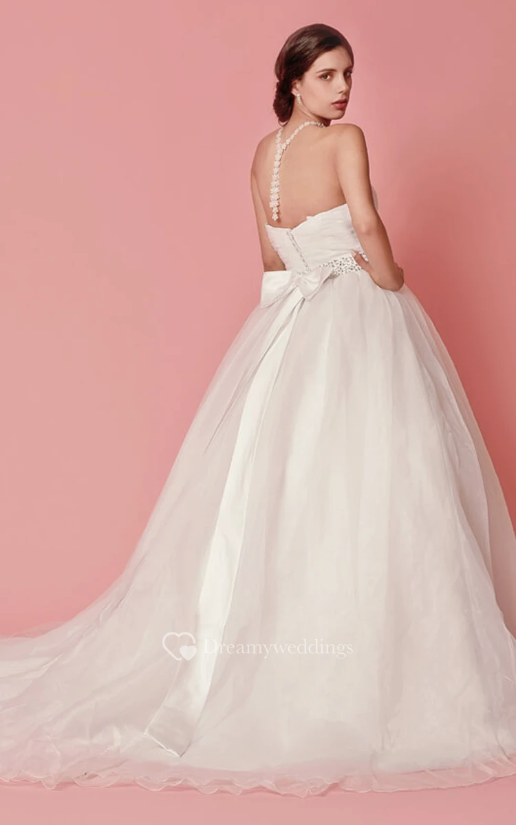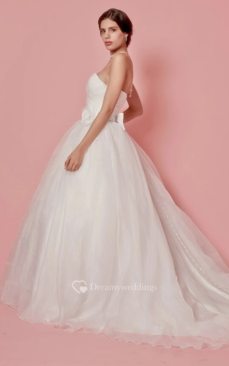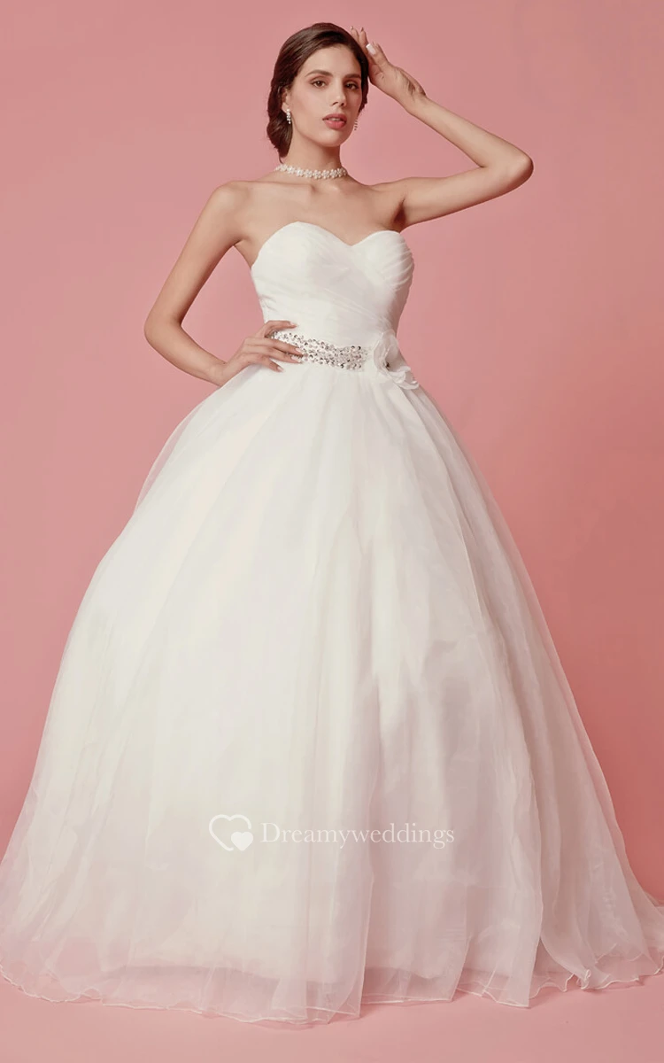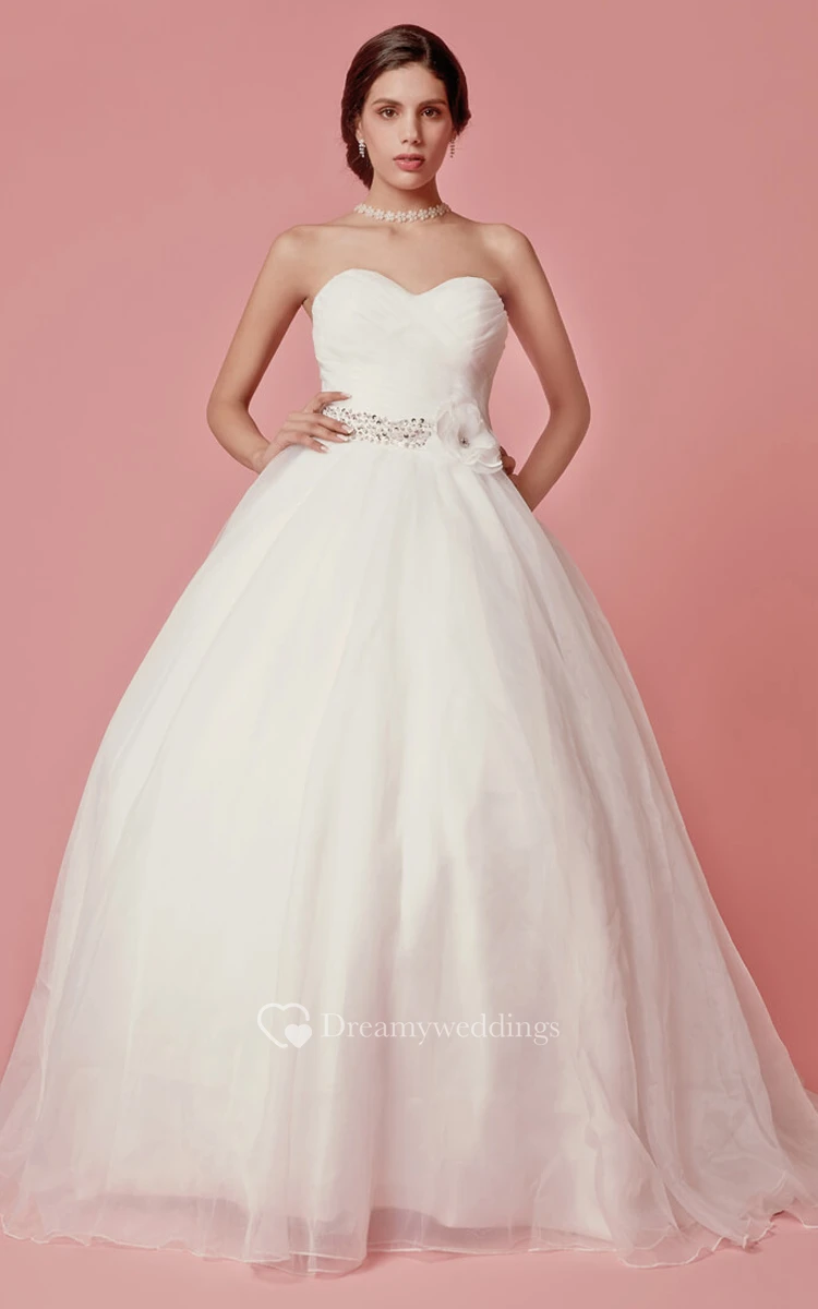 Femme Sweetheart Neckline Organza Ball Gown With Flower Detailing