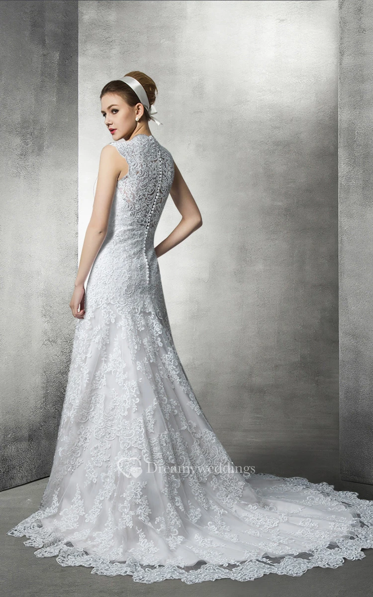 Fit and Flare Lace Wedding Gown With Plunging Neckline