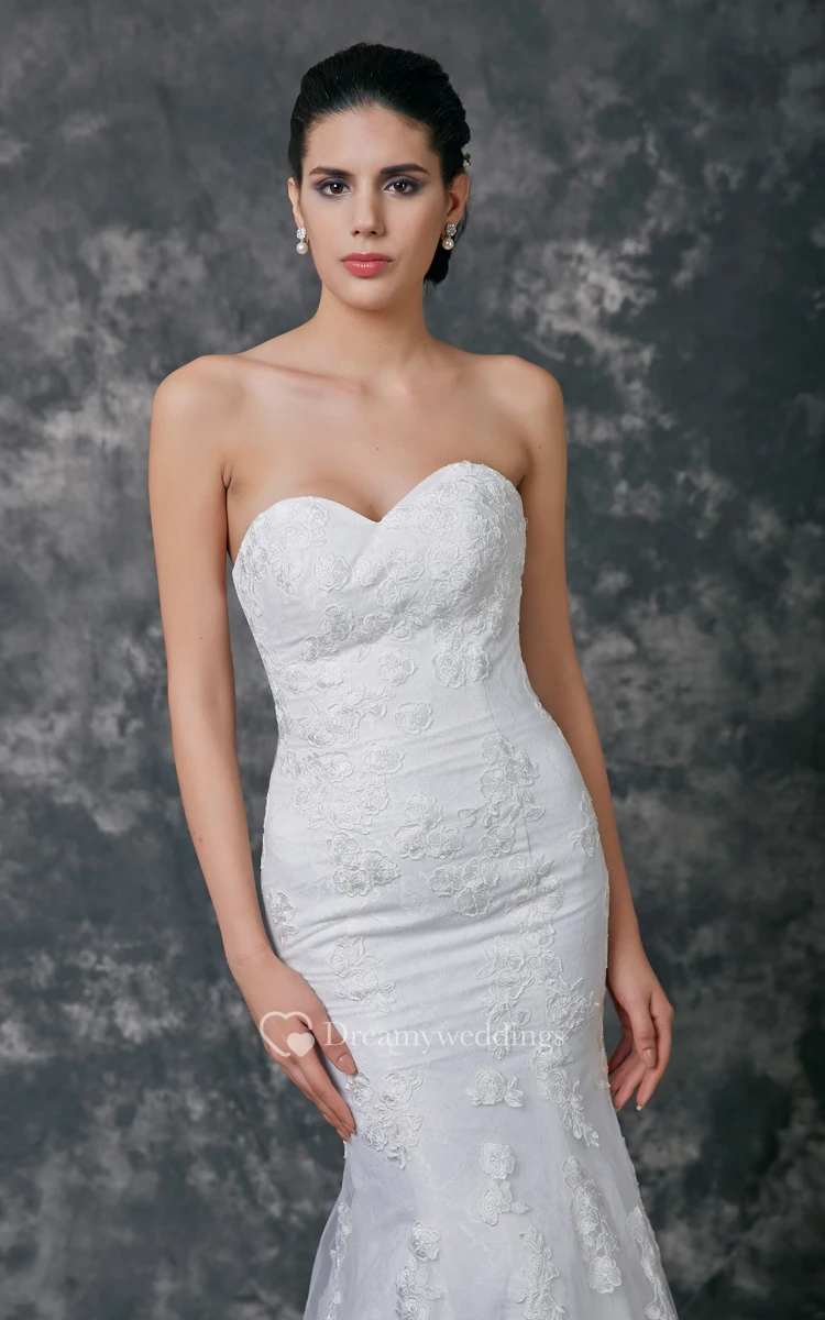 Fit and Flare Sweetheart Strapless Lace Dress With Court Train