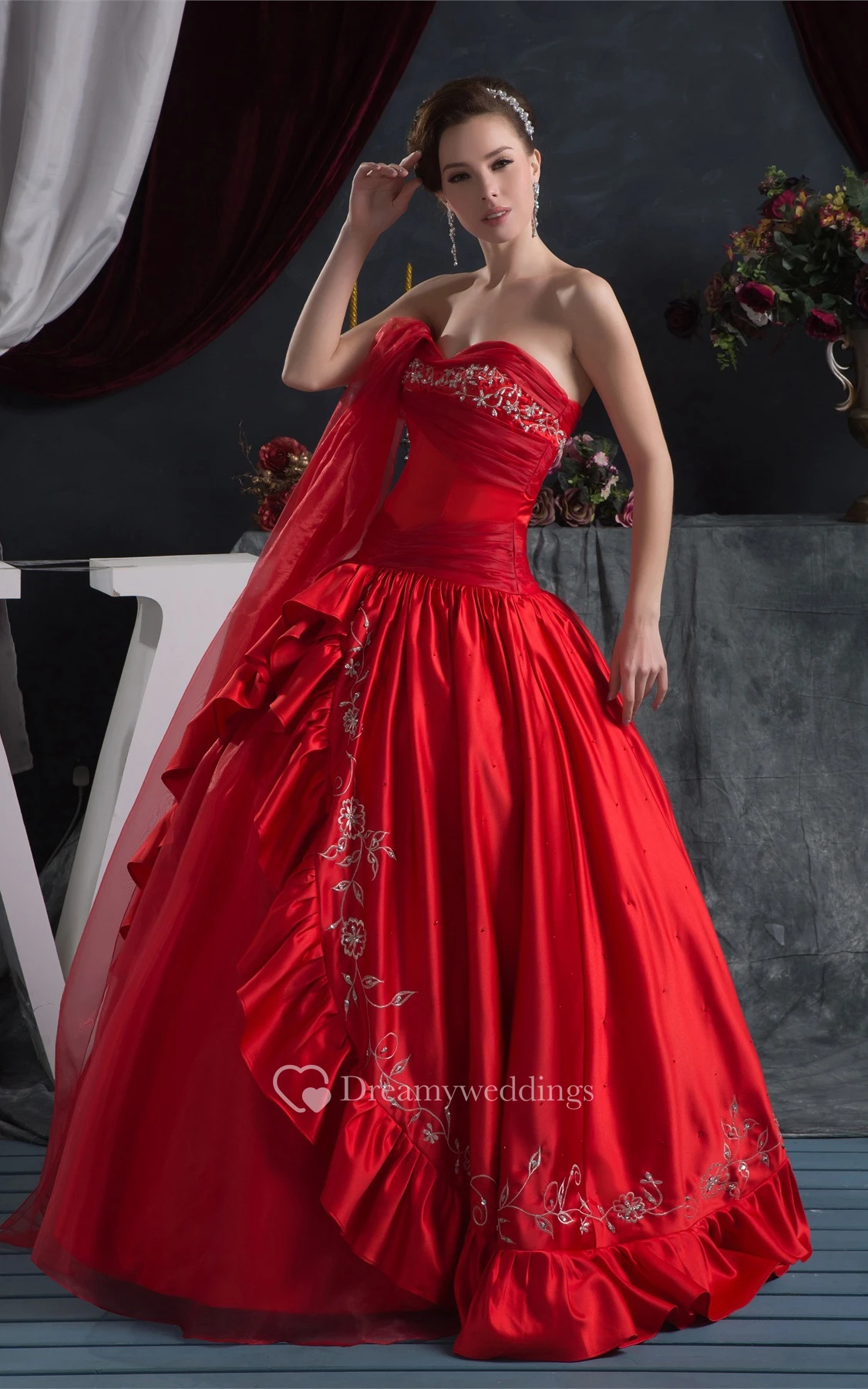 Flamboyant Ruched Sweetheart Draping and Ball-Gown With Embroideries