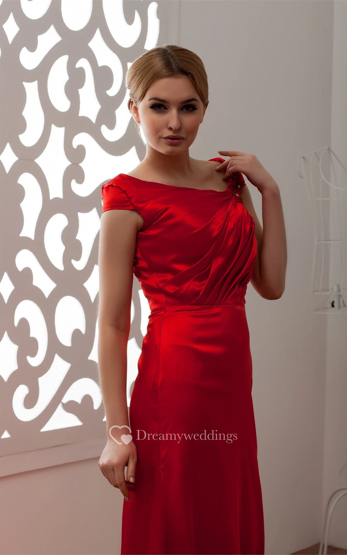 Flamboyant Satin Caped-Sleeve Epaulet and Dress With Ruching