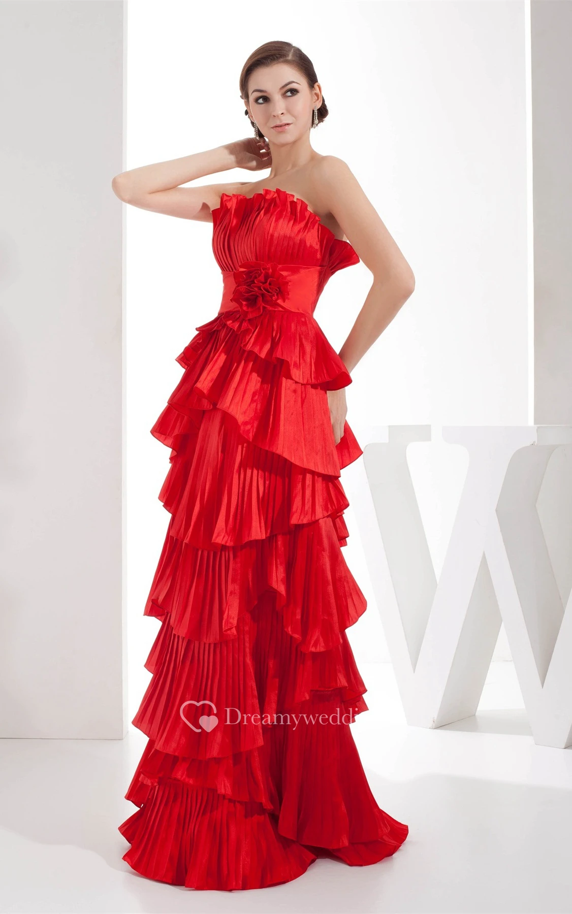Flamboyant Tiered Sleeveless Flower and Dress With Pleats