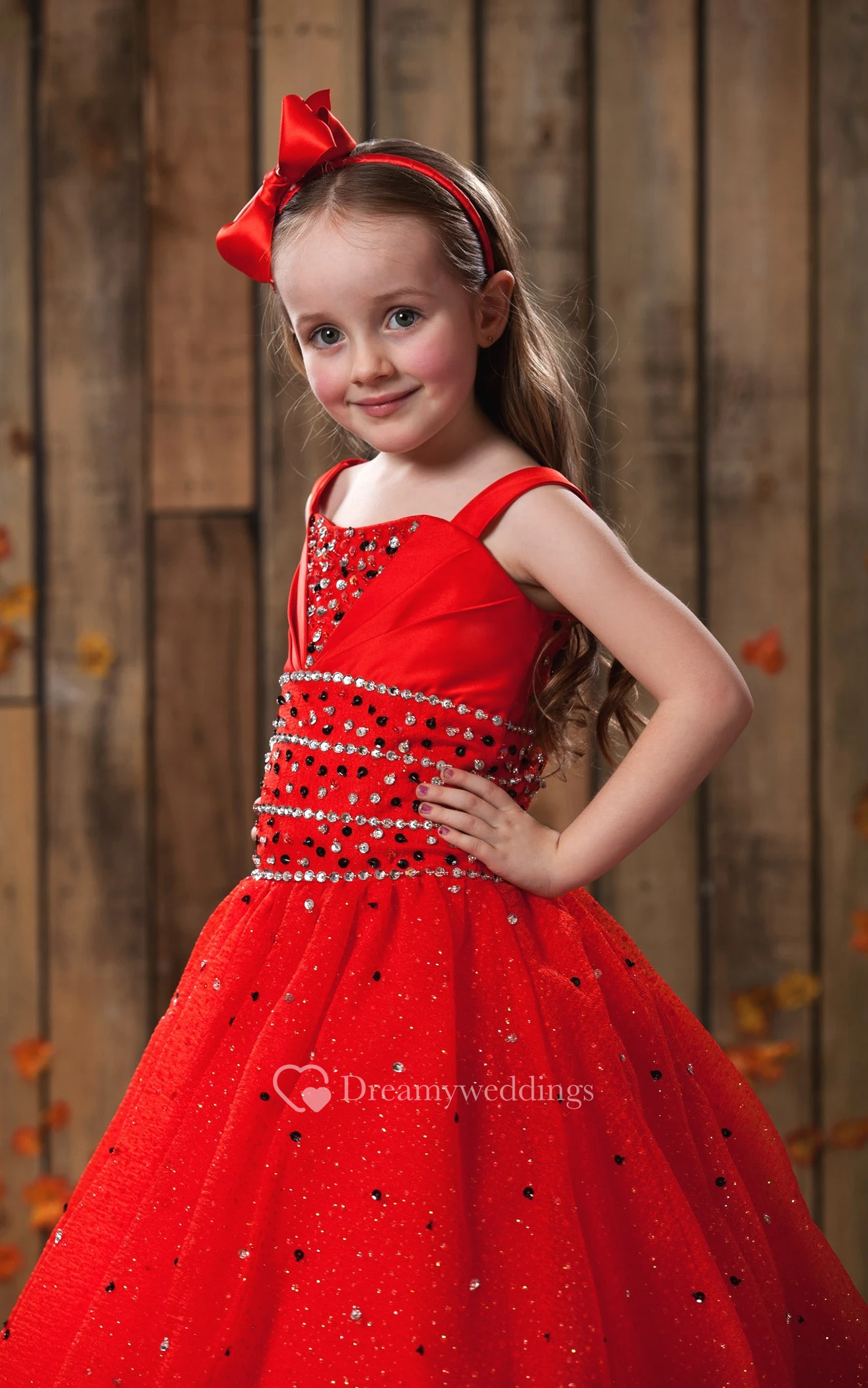 Flary Strapped A-Line Flower Girl Dress With Beaded Waist