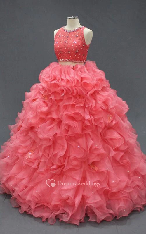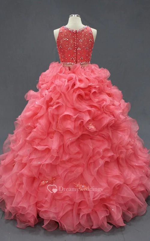 Floor-Length Beading Ruffles Zipper Corset Back Lace Organza Dress