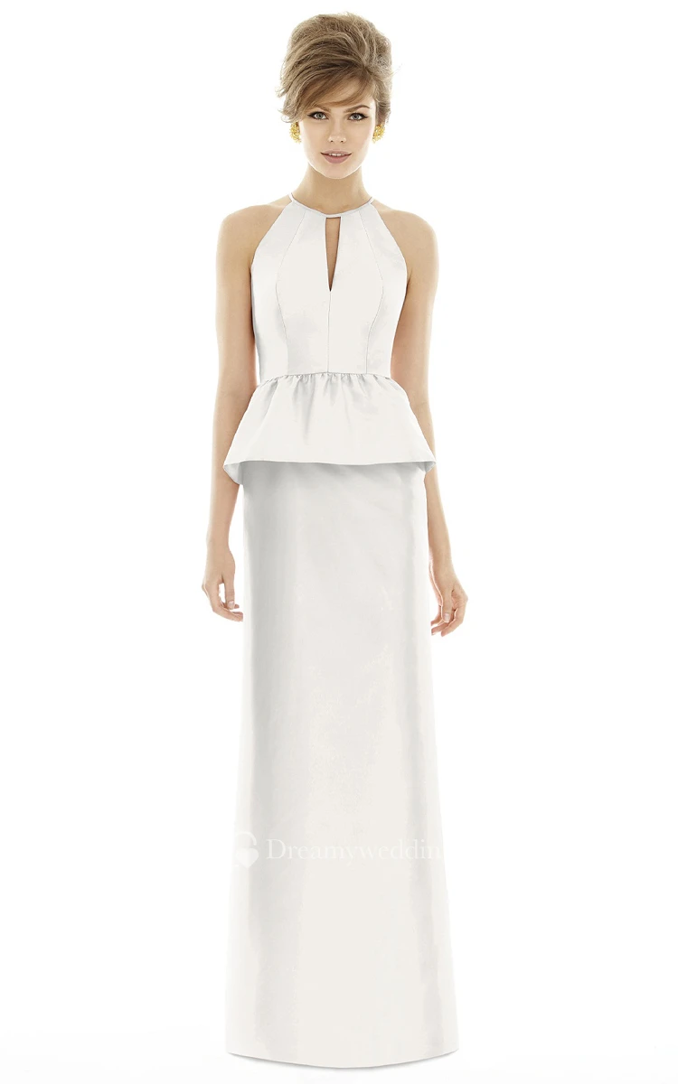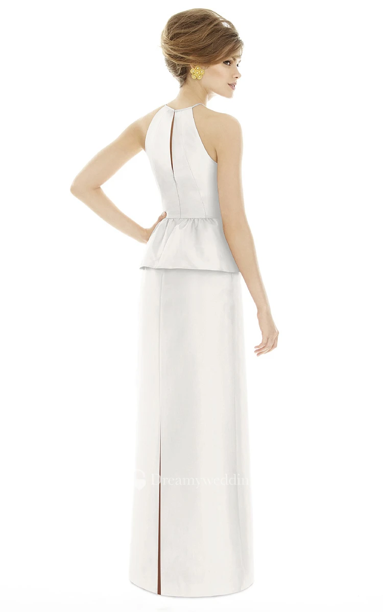 Floor-Length Column High-Neck Satin Dress with Keyhole and Pleats