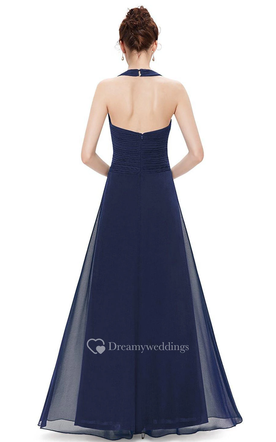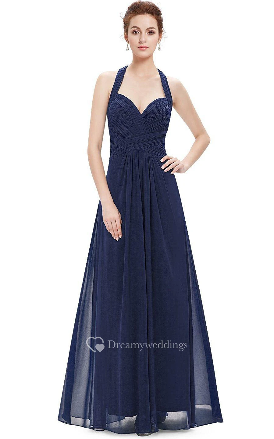 Floor-length Halter Pleated Chiffon Dress