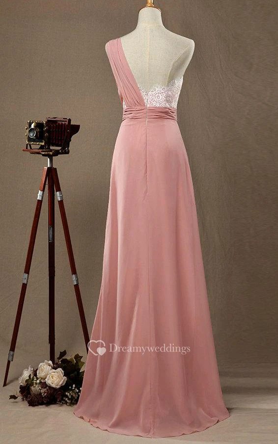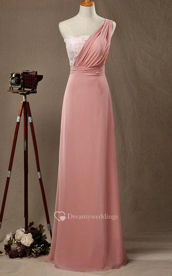 Floor-length One-shoulder Chiffon&Lace&Satin Dress