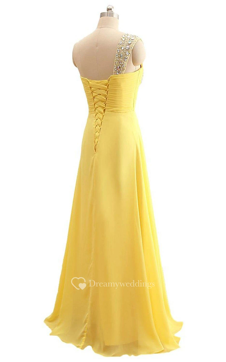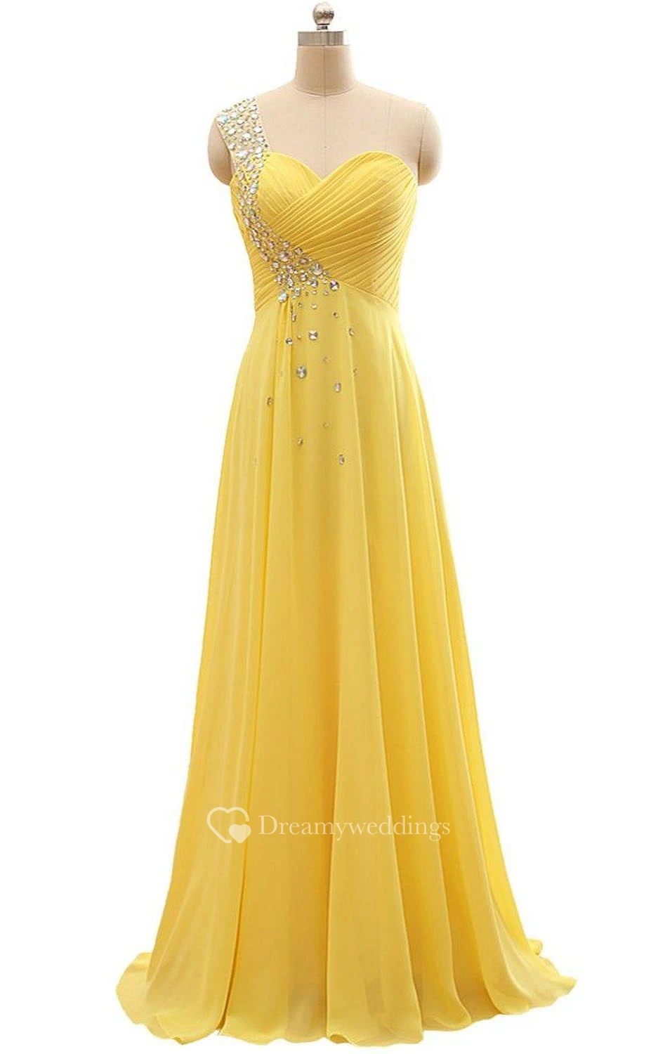 Floor-length One-Shoulder Chiffon Pleats Beading Dress