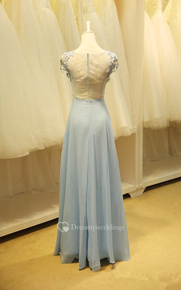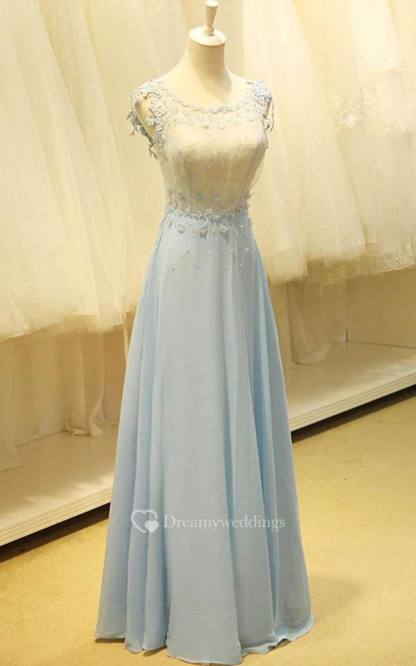 Floor-length Scoop Appliques Keyhole Chiffon Dress
