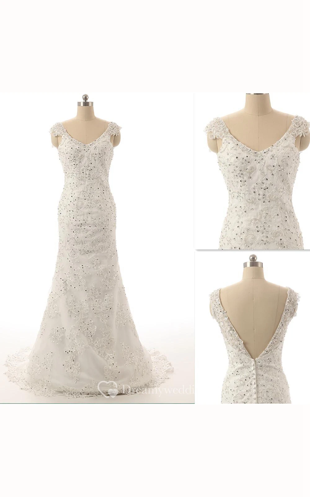 Floor-Length Scoop Bell Cap Beading Appliques Zipper Corset Back Lace Sequins Organza Dress