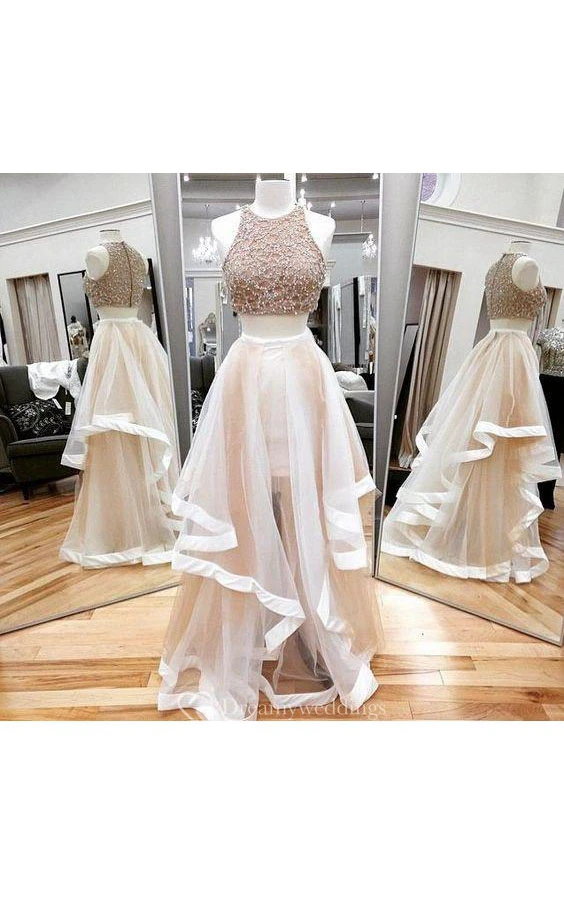 Floor-length Sleeveless A-line Tulle Dress with Ruffles