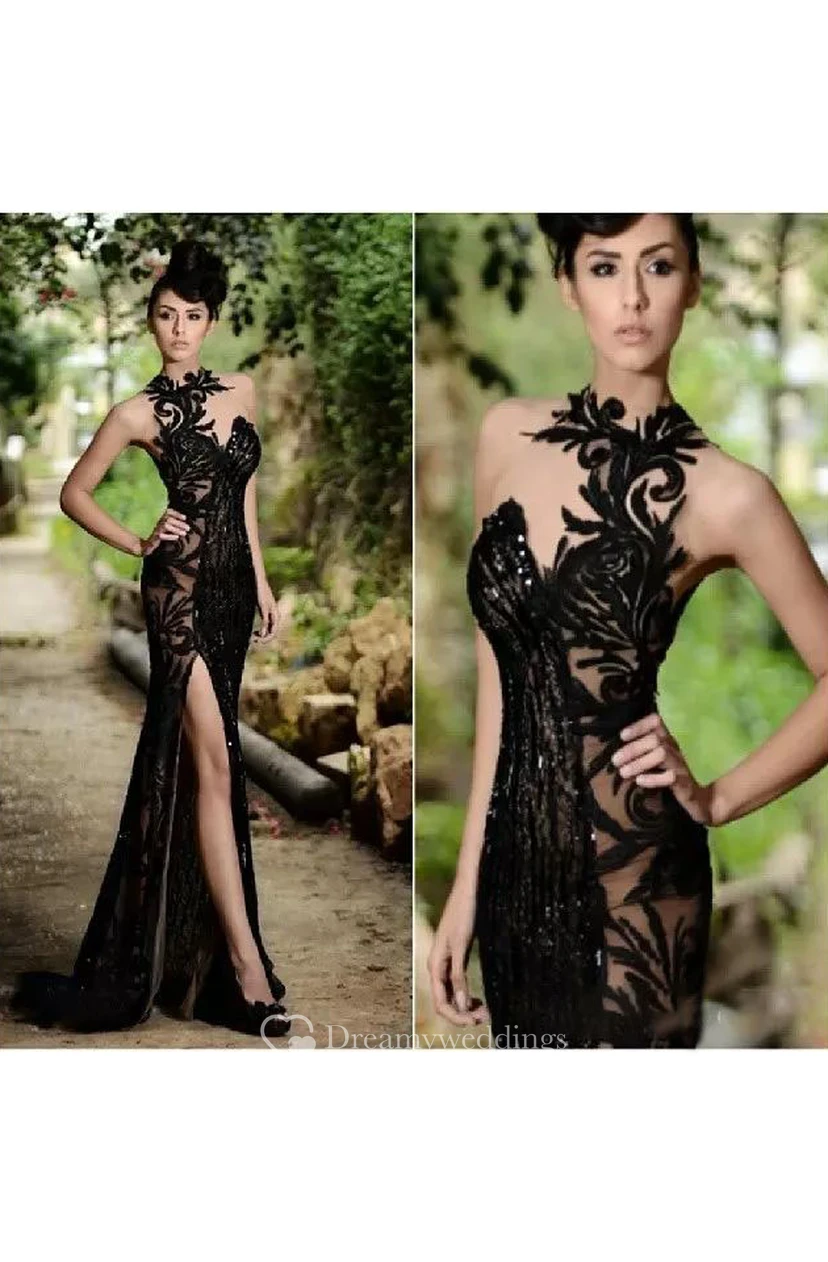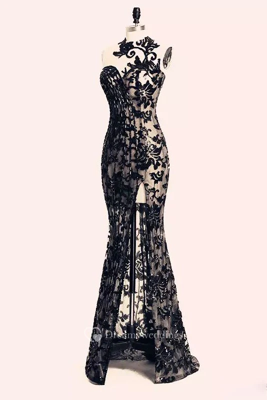 Floor-length Sleeveless Open Back Bateau Lace Sexy Modern Bodycon Zipper Lace Evening Dress