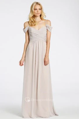 Floor-Length Spaghetti Criss-Cross Chiffon Bridesmaid Dress With Brush Train And V Back