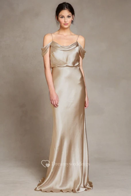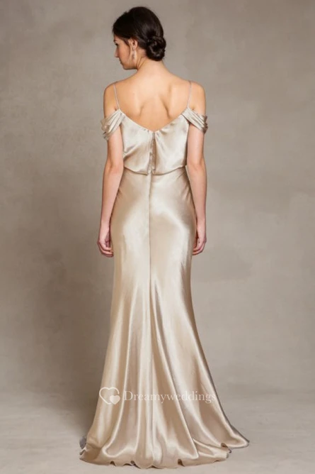 Floor-Length Spaghetti Sleeveless Satin Bridesmaid Dress With Low-V Back