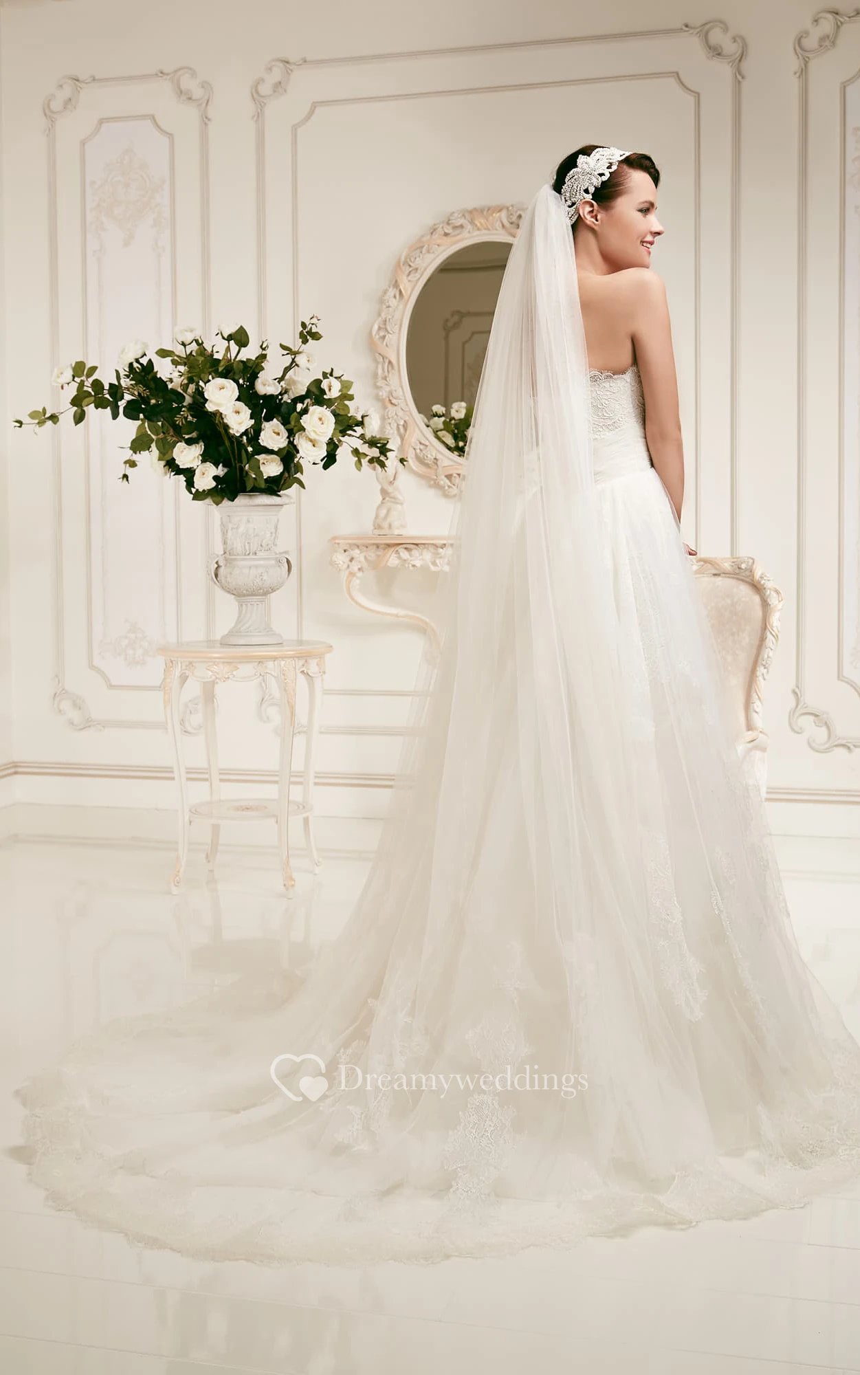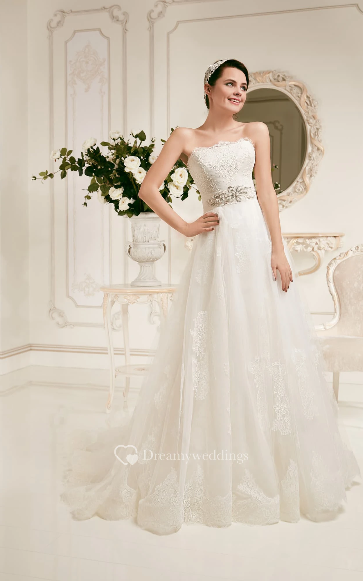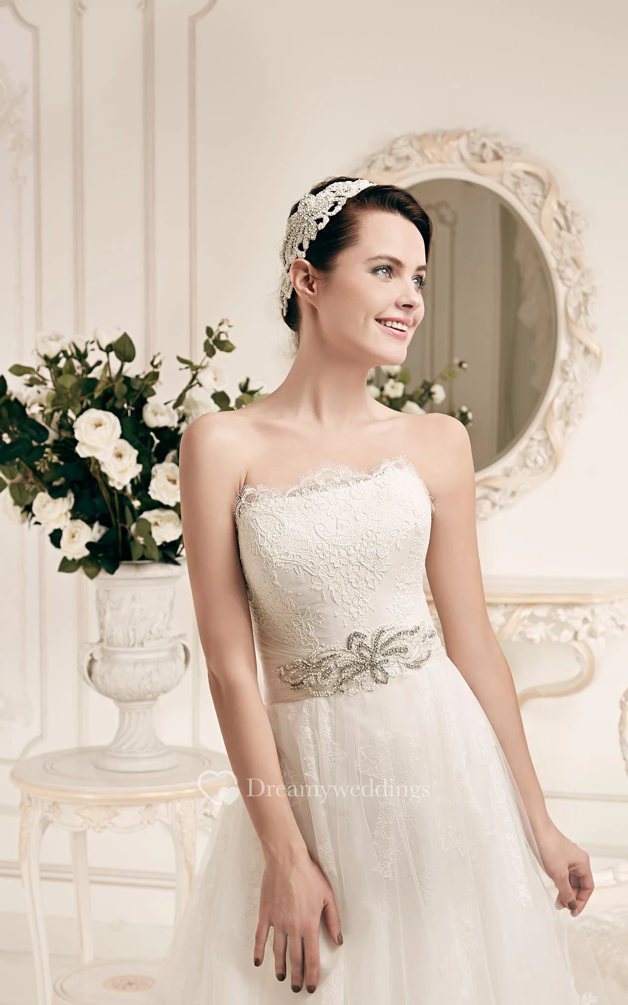 Floor-length Strapless Sleeveless Lace Appliques Dress With Crystal Detailing
