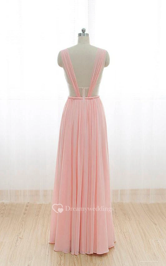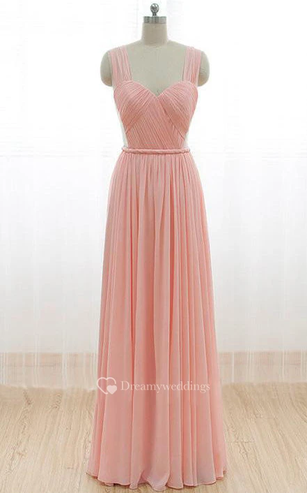 Floor-length Straps Pleats Chiffon Dress with V Back